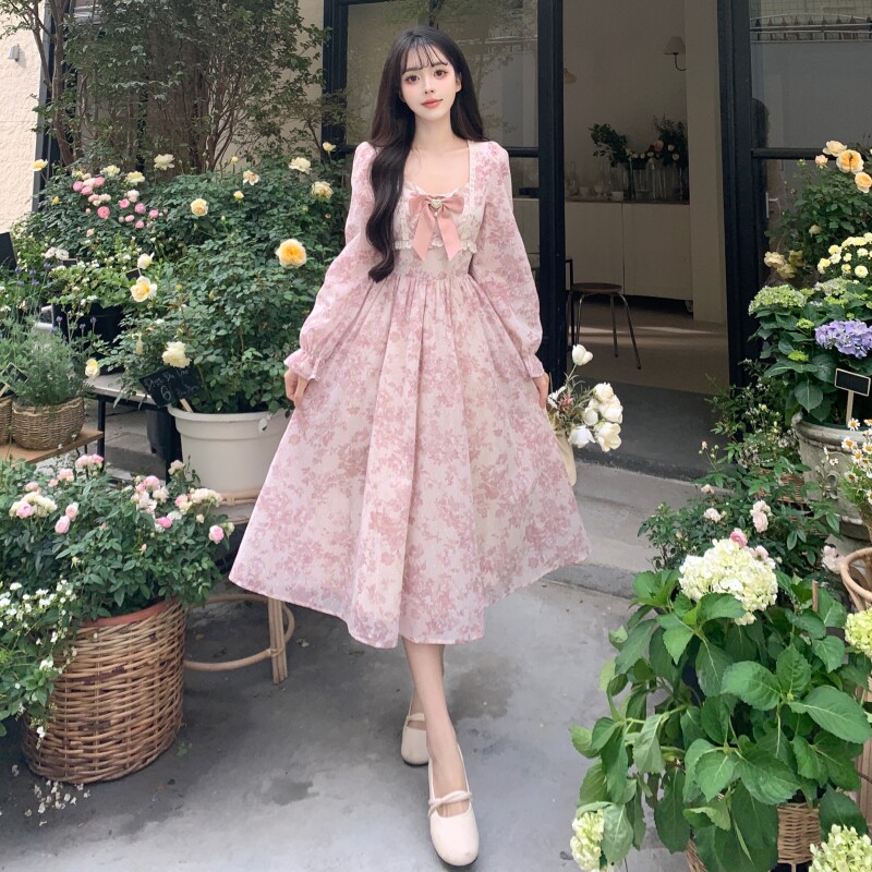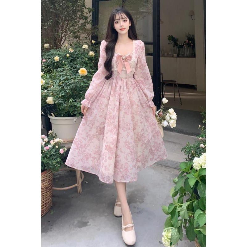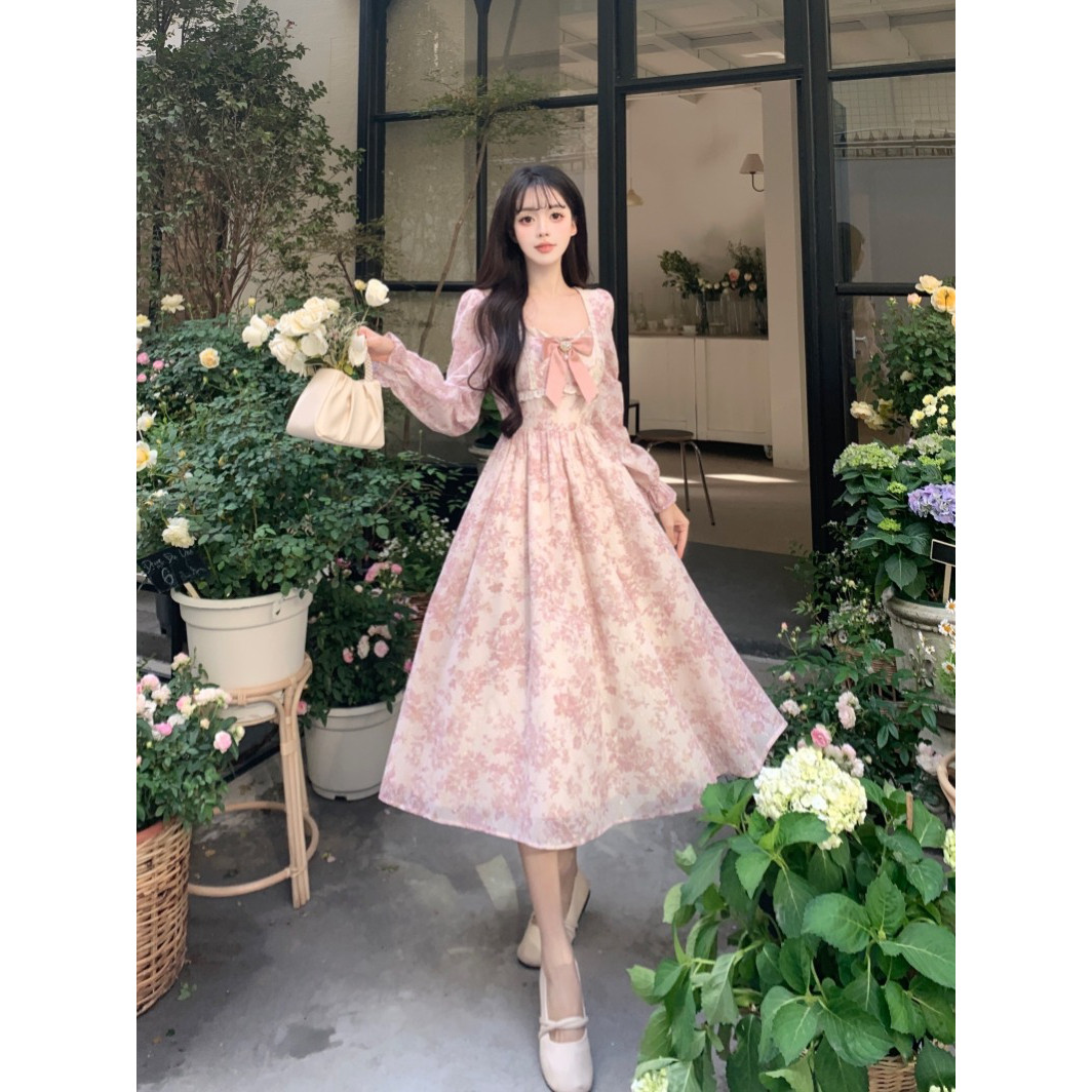 法式甜美碎花长袖连衣裙女秋季高级感气质长裙收腰温柔风仙女裙子