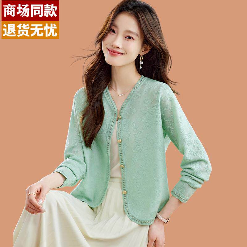 春装女款2025新款小香风外套冰丝针织开衫短款披肩外搭上衣配裙子