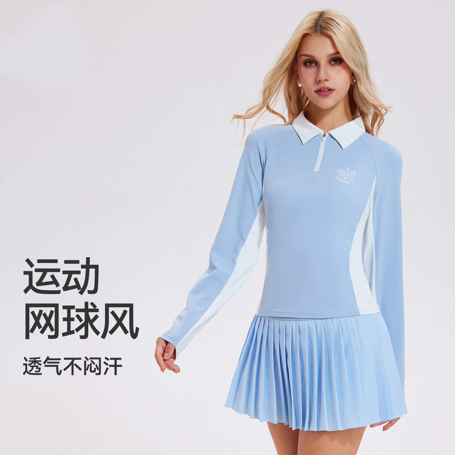 运动套装女新款春秋polo衫修身网球服长袖速干户外晨跑步健身上衣