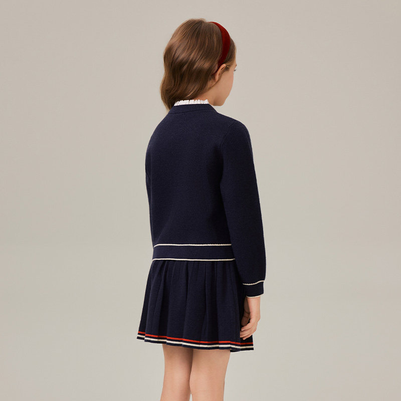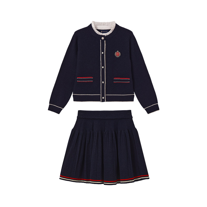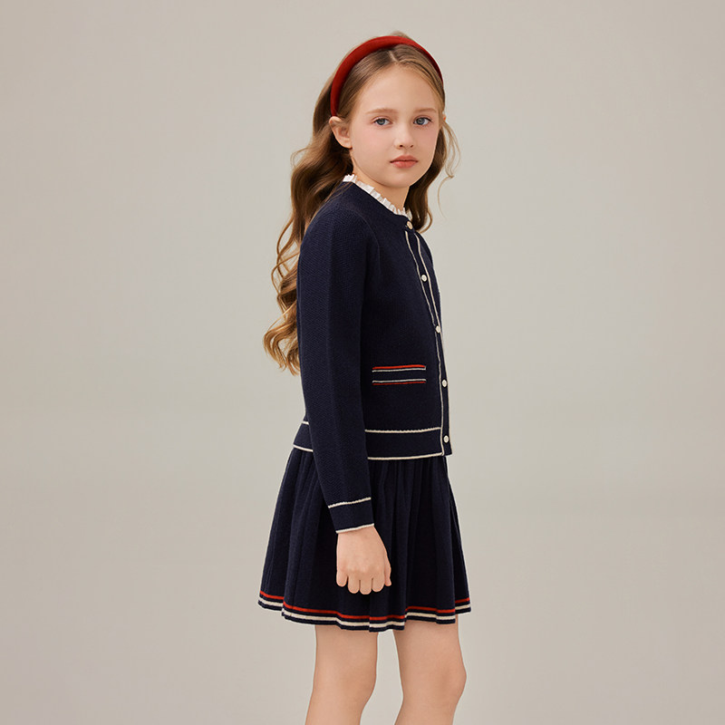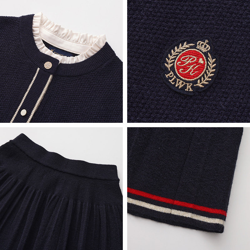 POLOWALK童装 女童长袖套装针织衫裙儿童两件套2025秋冬装短裙子