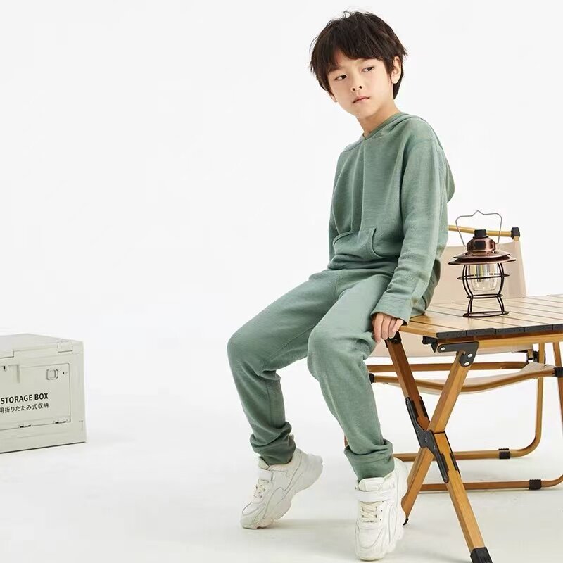 春季上新美利奴超细羊毛儿童秋装运动卫衣连帽新款男女童薄款外套