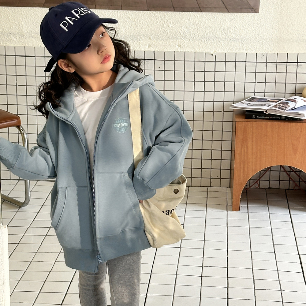 女童外套春装2026新款儿童连帽卫衣春秋时髦洋气初中生拉链衫上衣