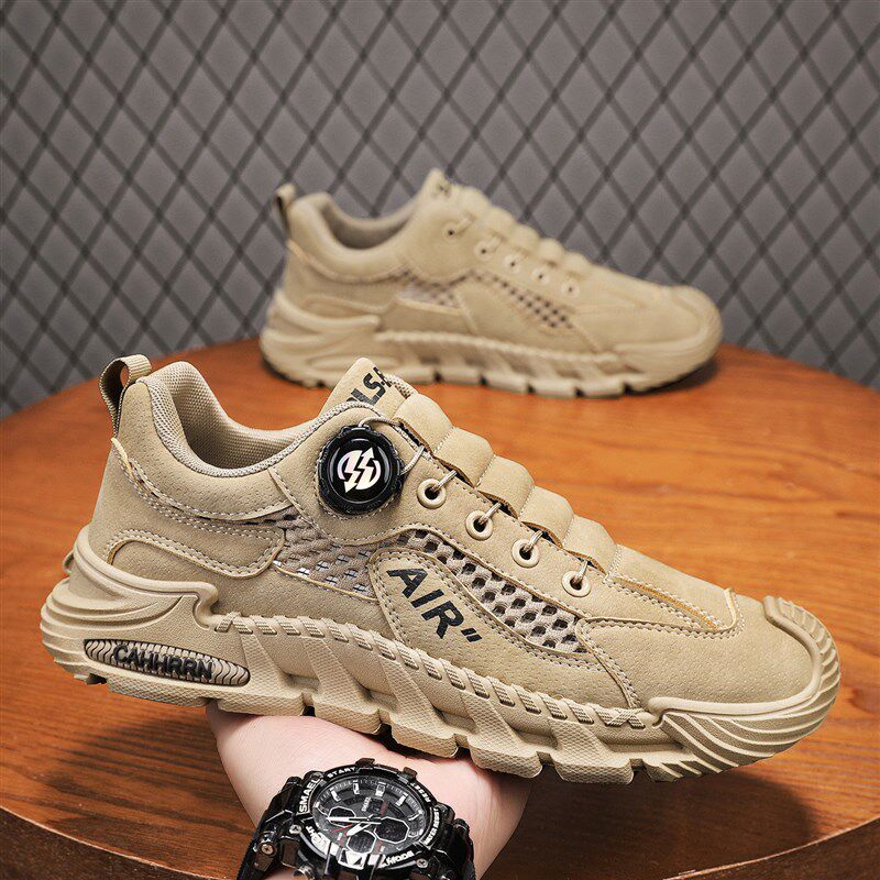 男鞋夏季2025新款网面透气休闲旋钮运动鞋工地干活防滑耐磨劳保鞋
