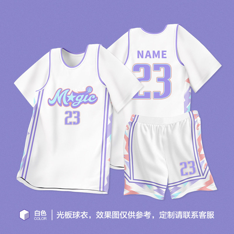 粉色篮球服女生套装初中生班级运动会假两件美式篮球衣女款情侣装