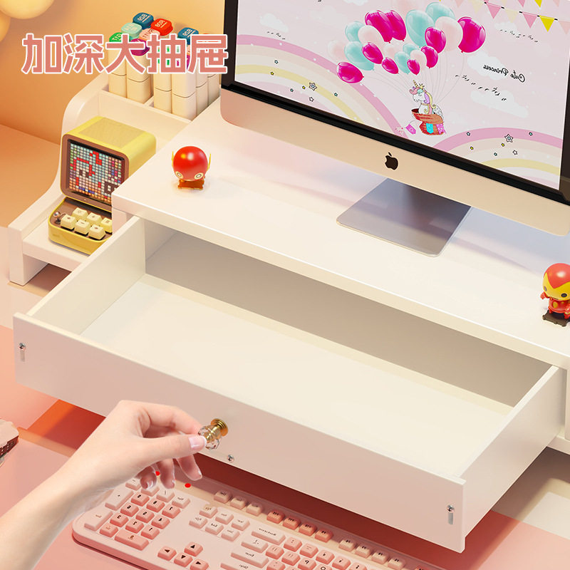 电脑增高架办公室带抽屉桌面置物架台式显示器支撑架女生工位神器
