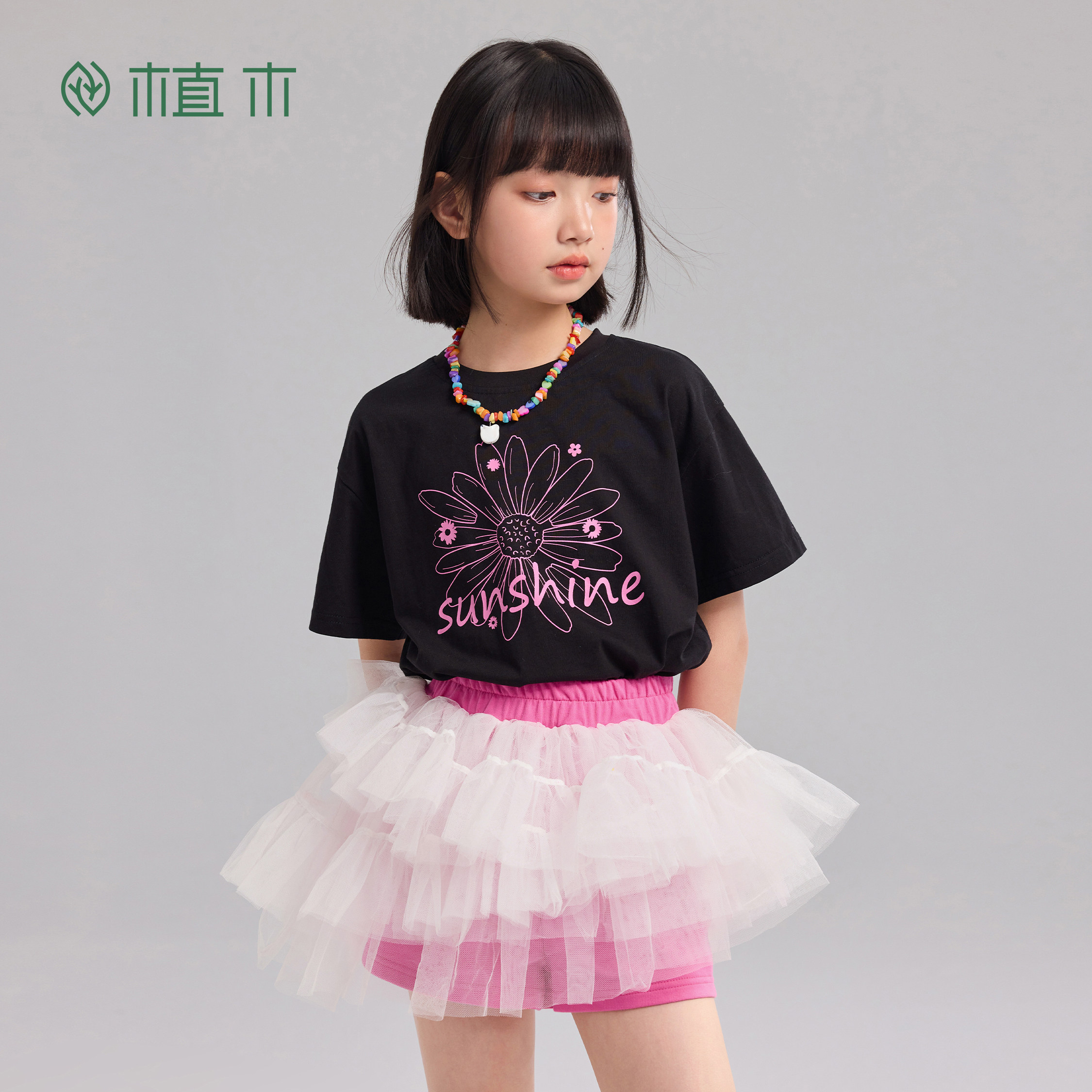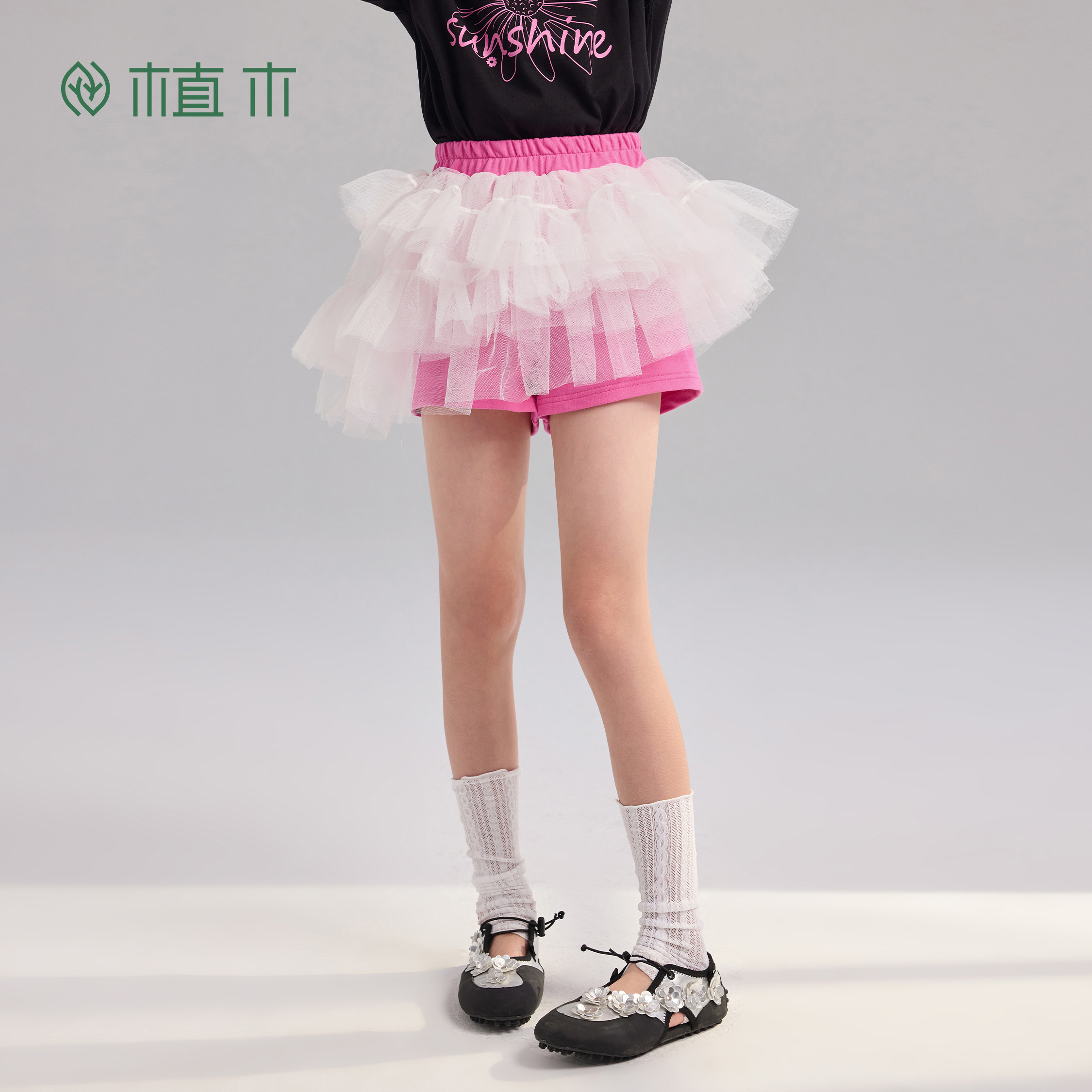 植木【粉屿梦境】纱网拼接裙裤 纯棉裙子 女童短裙2026年夏季新款