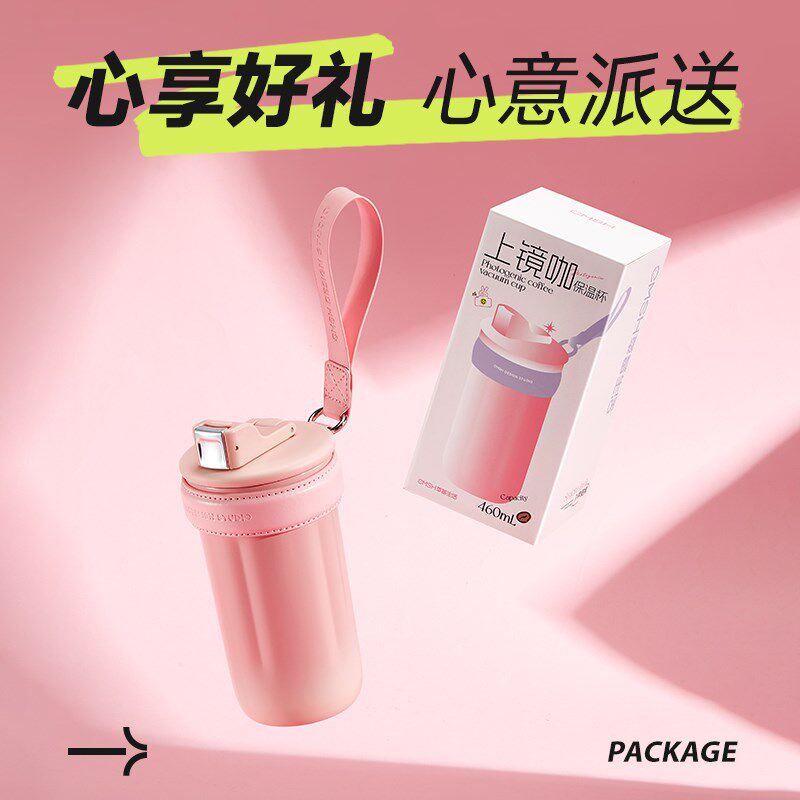 草莓生活保温杯女生2024新款咖啡杯子高档精致便携水杯女士高颜值