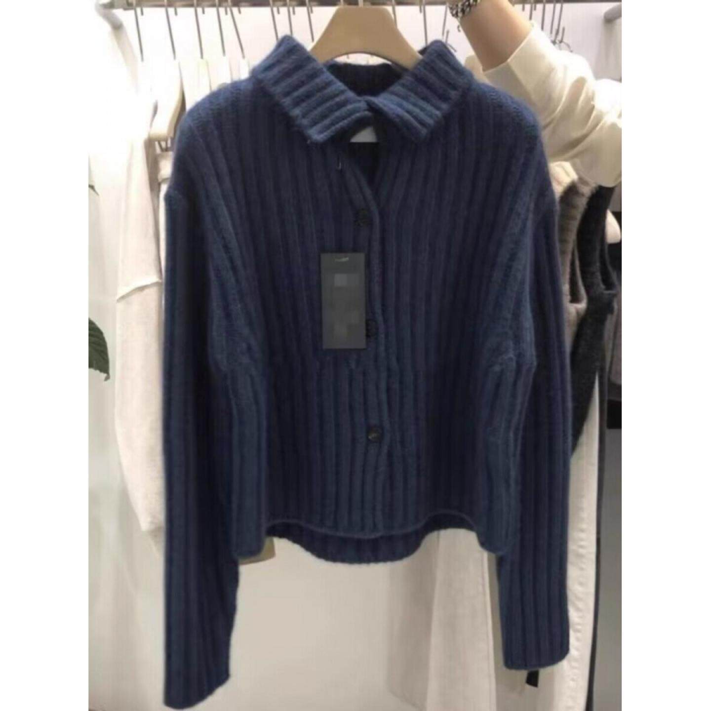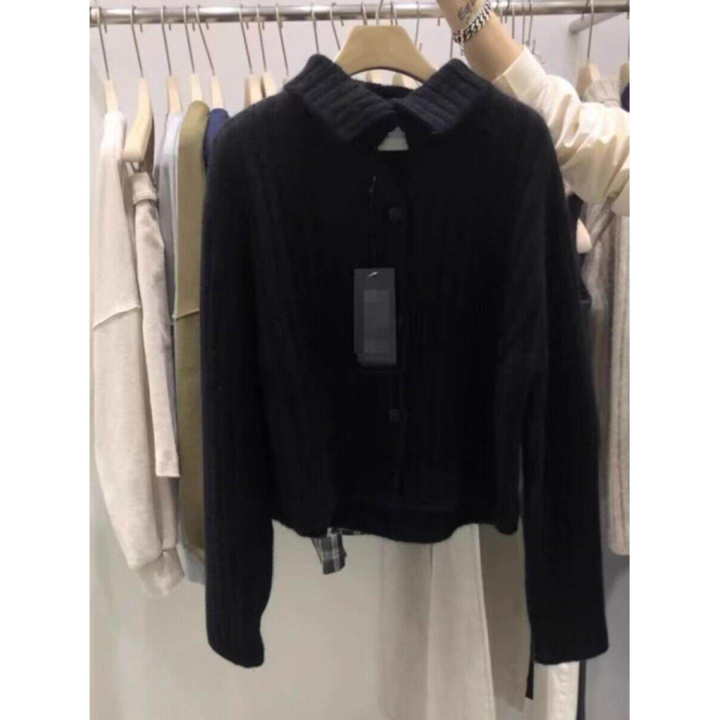 100%山羊绒开衫女加厚坑条翻领2025秋冬新款宽松短款针织毛衣外套