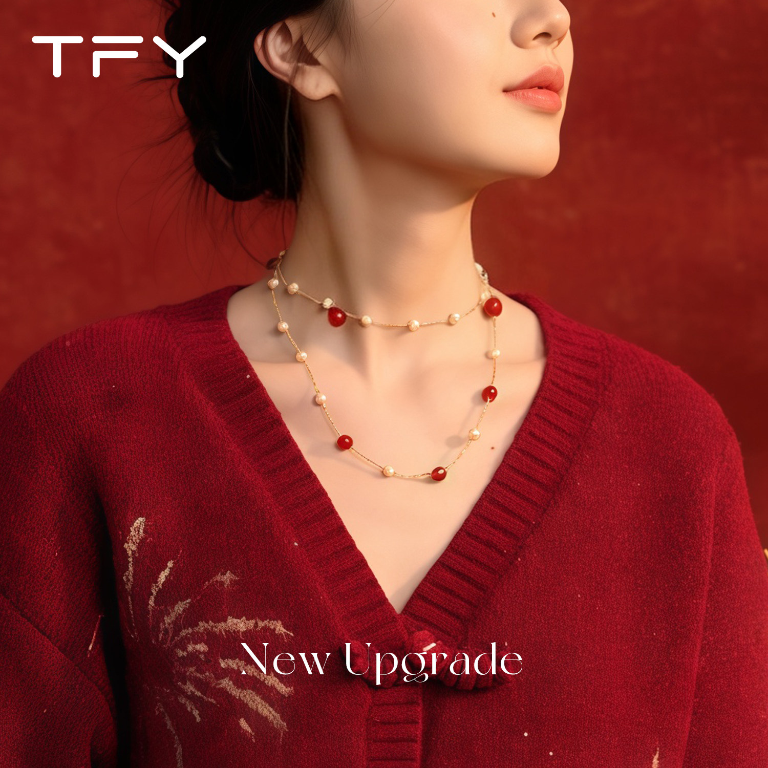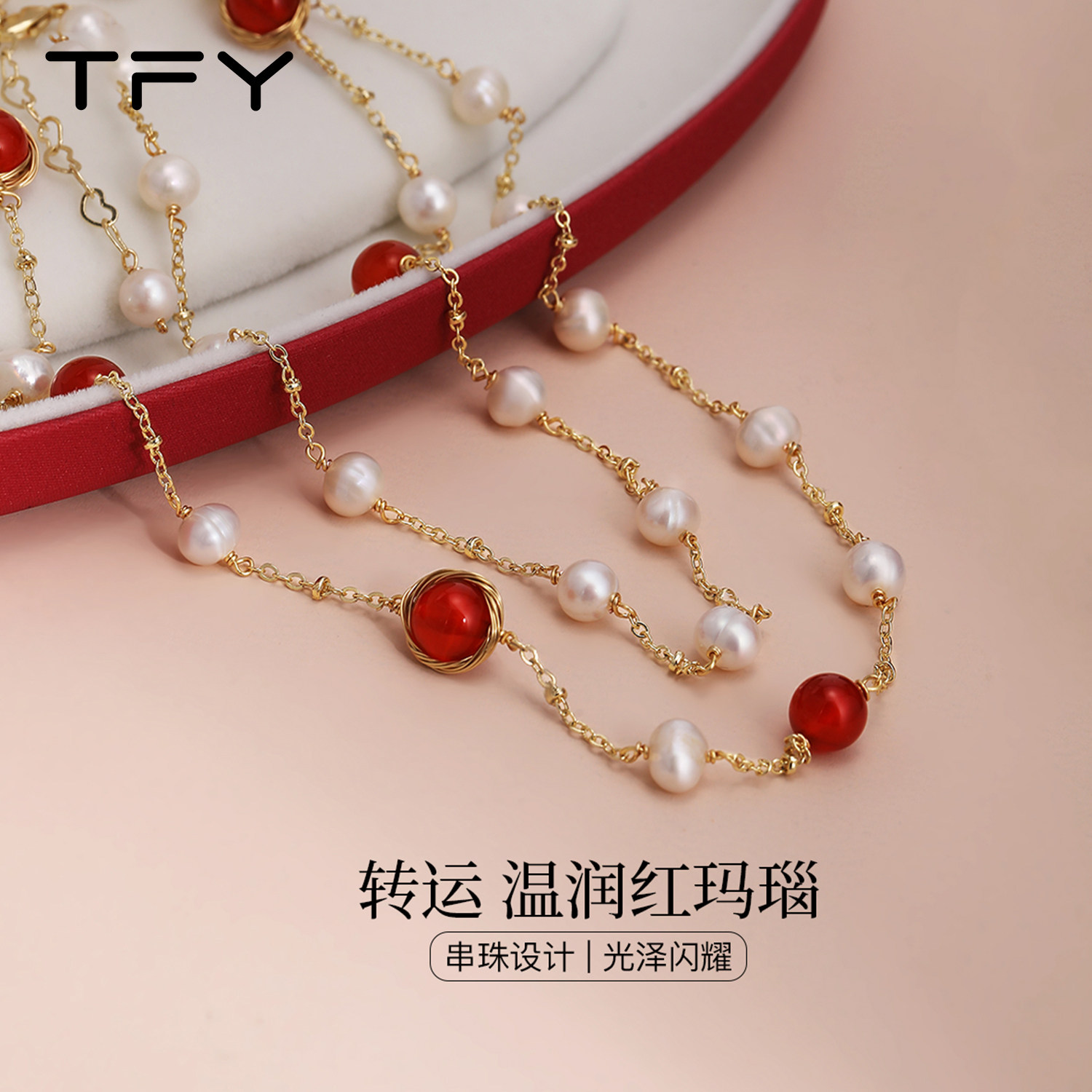 红玛瑙珍珠毛衣项链高级感轻奢小众女款2026新款长款红色毛衣链