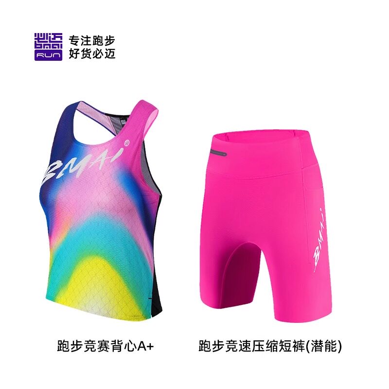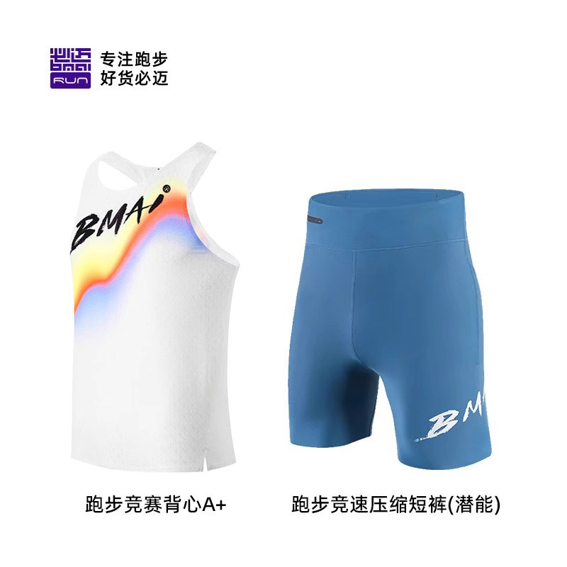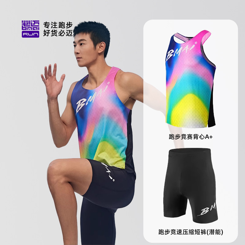 必迈夏季新款跑步训练套装男女竞赛A+背心压缩短裤运动专业马拉松