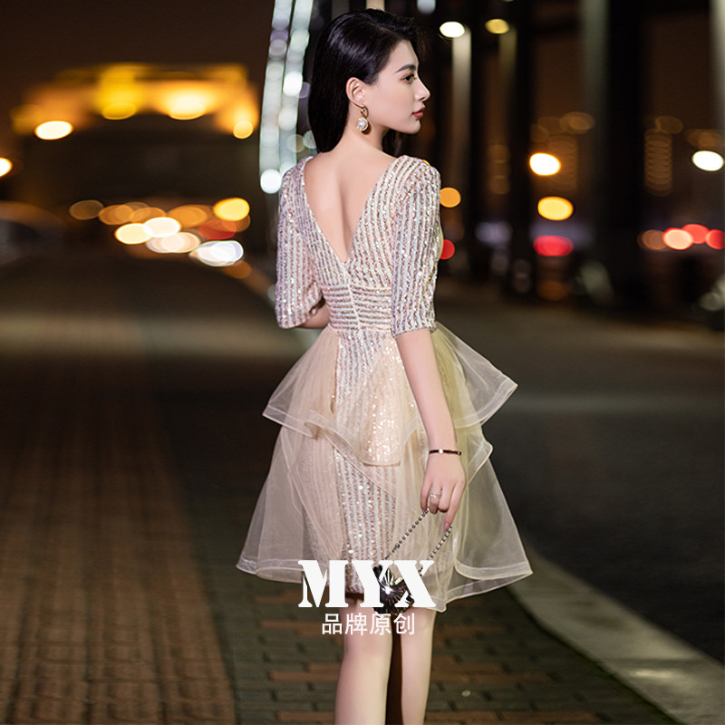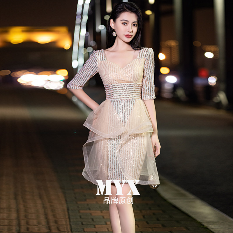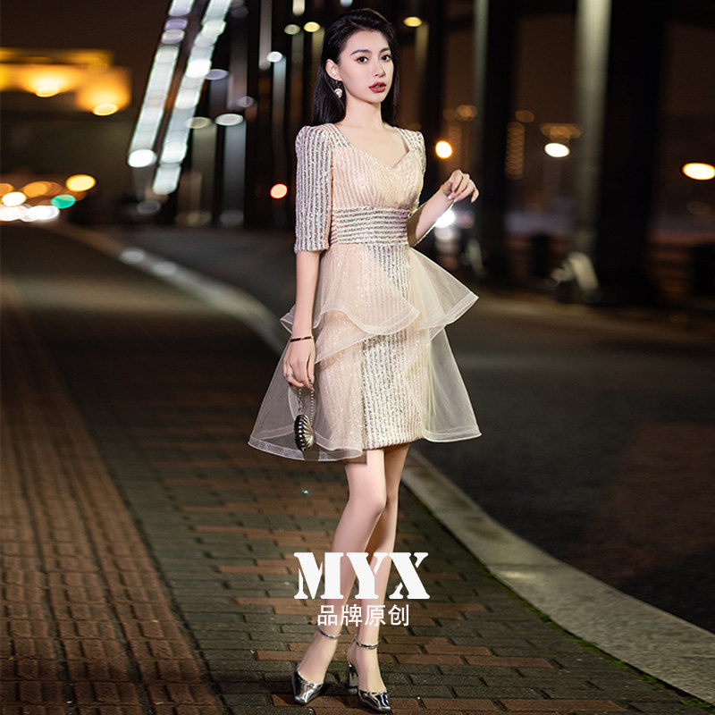 名媛小晚礼服裙女2026新款宴会高端轻奢小众亮片短款高级感连衣裙