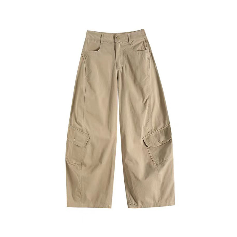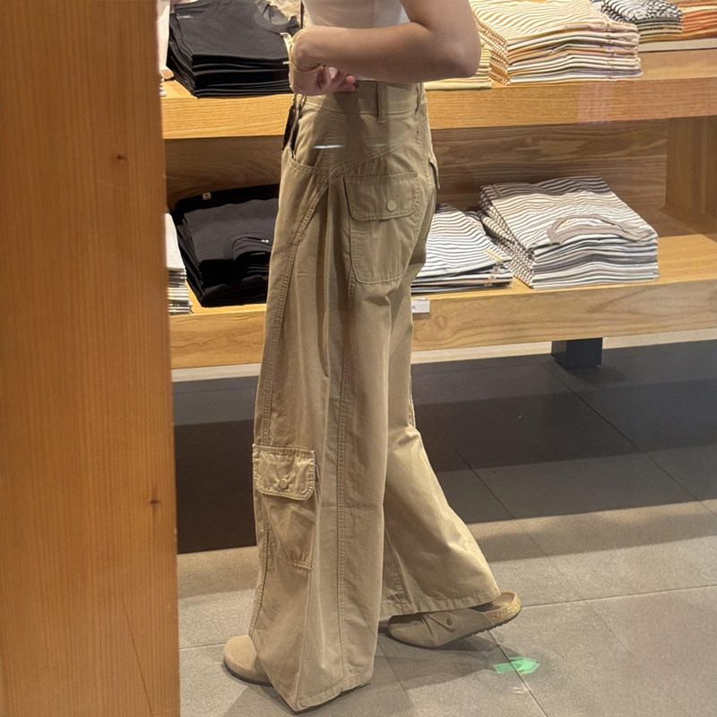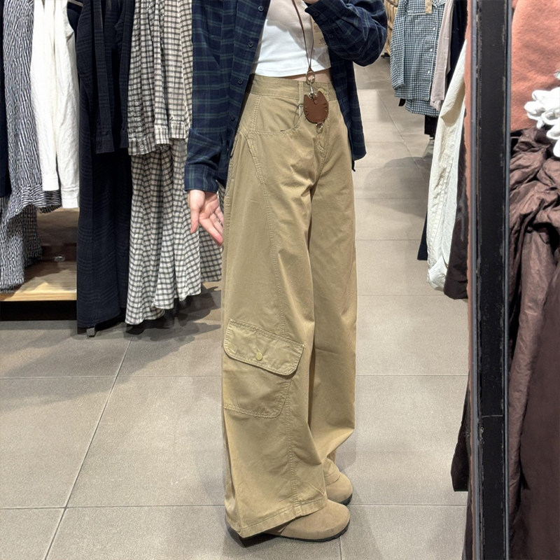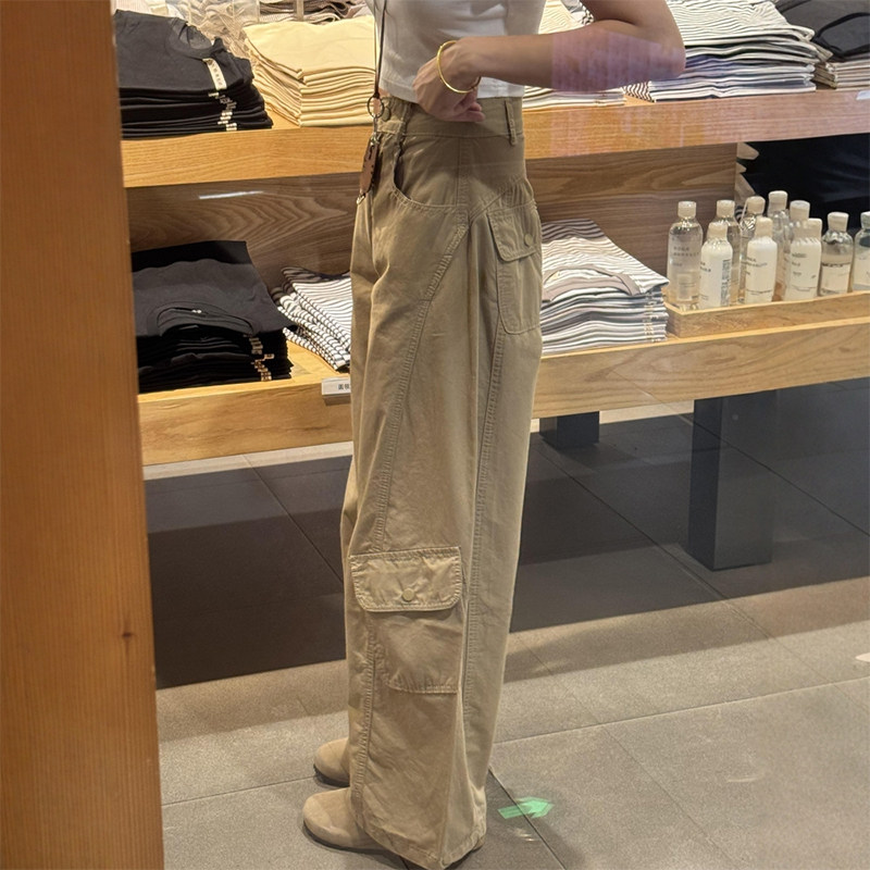 卡其色春季穿搭阔腿工装裤子女款胖mm大码显瘦遮肉休闲直筒弯刀裤