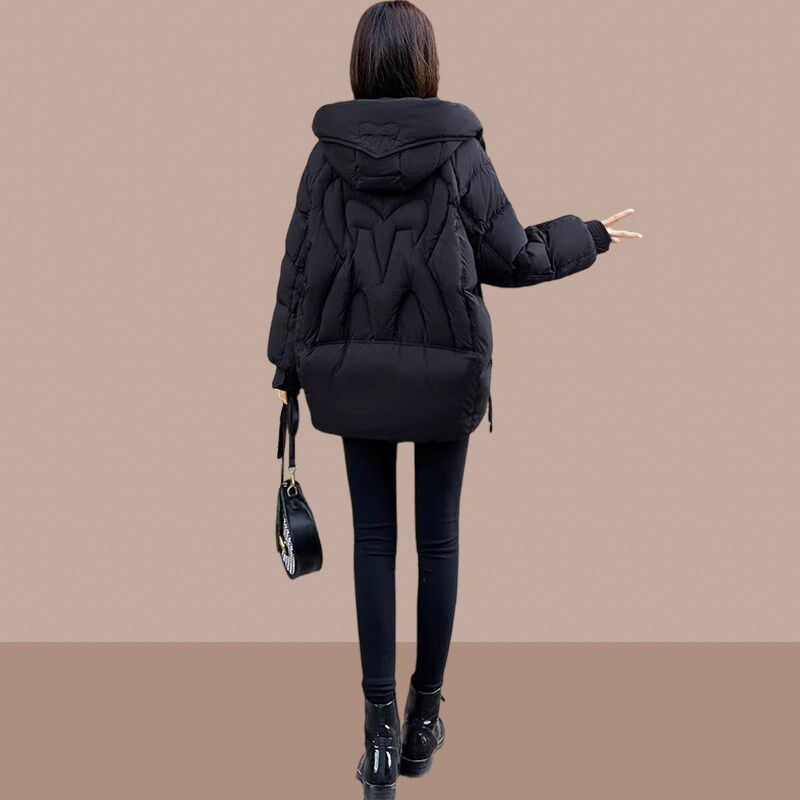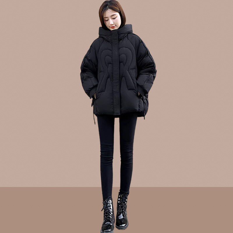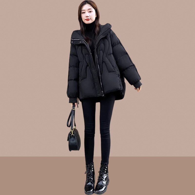 黑色棉衣棉服女款2024新款女冬季短款小个子连帽加厚W高级感面包
