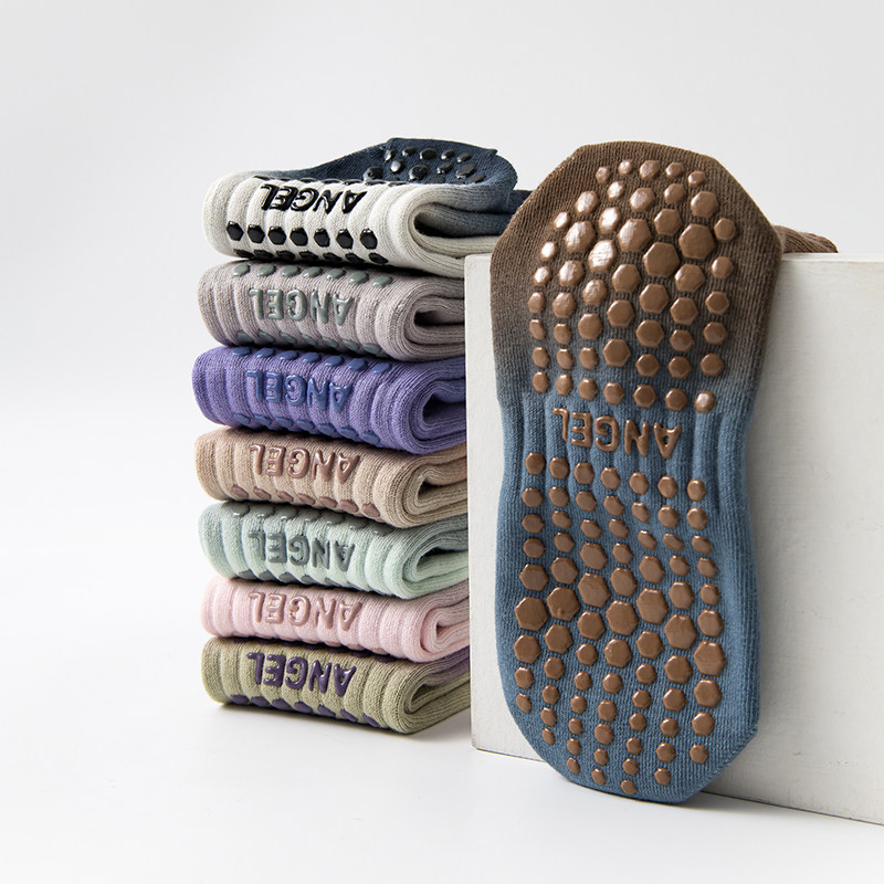 扎染渐变瑜伽袜子女纯棉中筒袜专业防滑运动普拉提健身室内地板袜