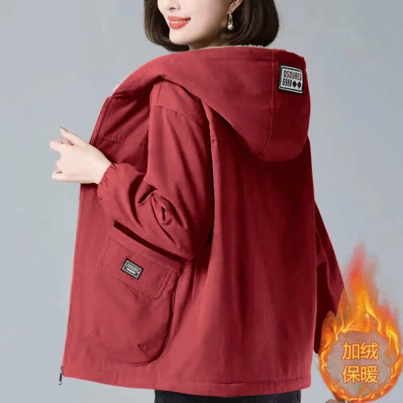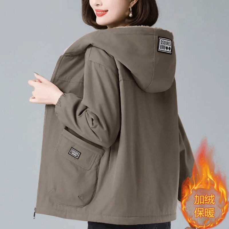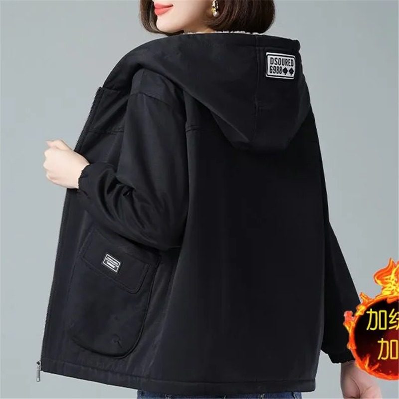 大码连帽羊羔毛外套女士冬季宽松洋气减龄加绒加厚保暖棉衣棉服潮