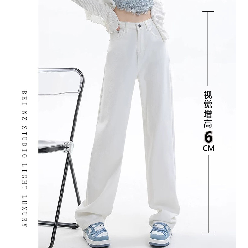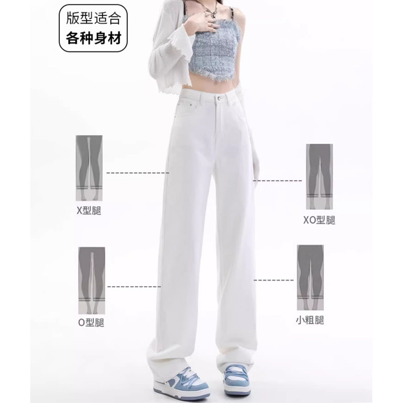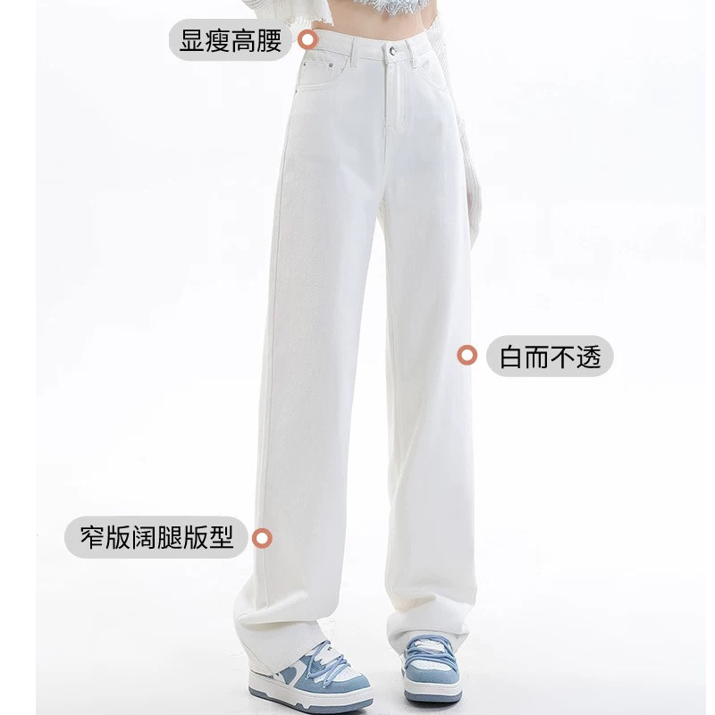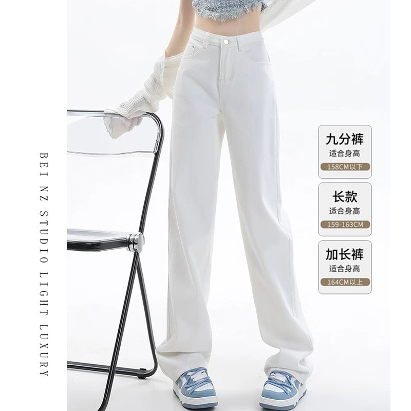 白色小个子窄版直筒牛仔裤女2026春季新款高腰垂感高级感阔腿裤子