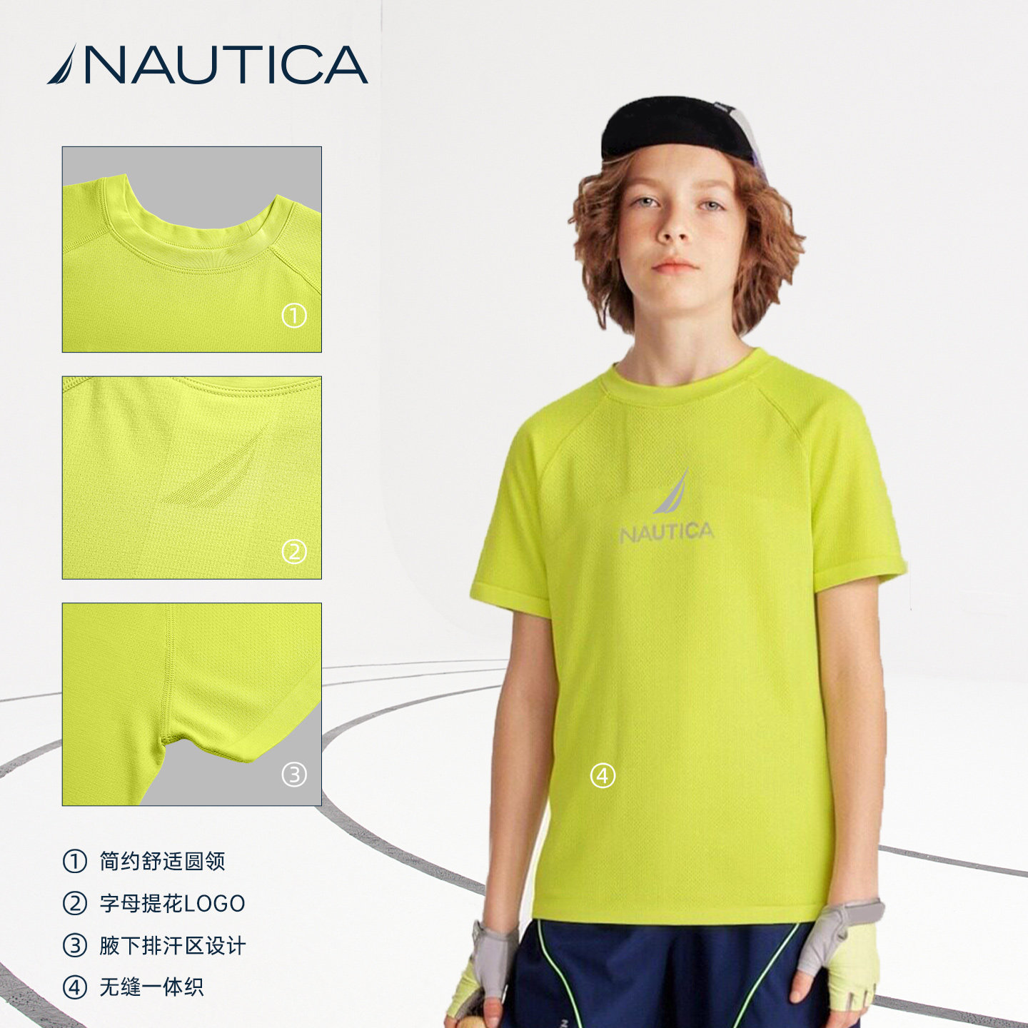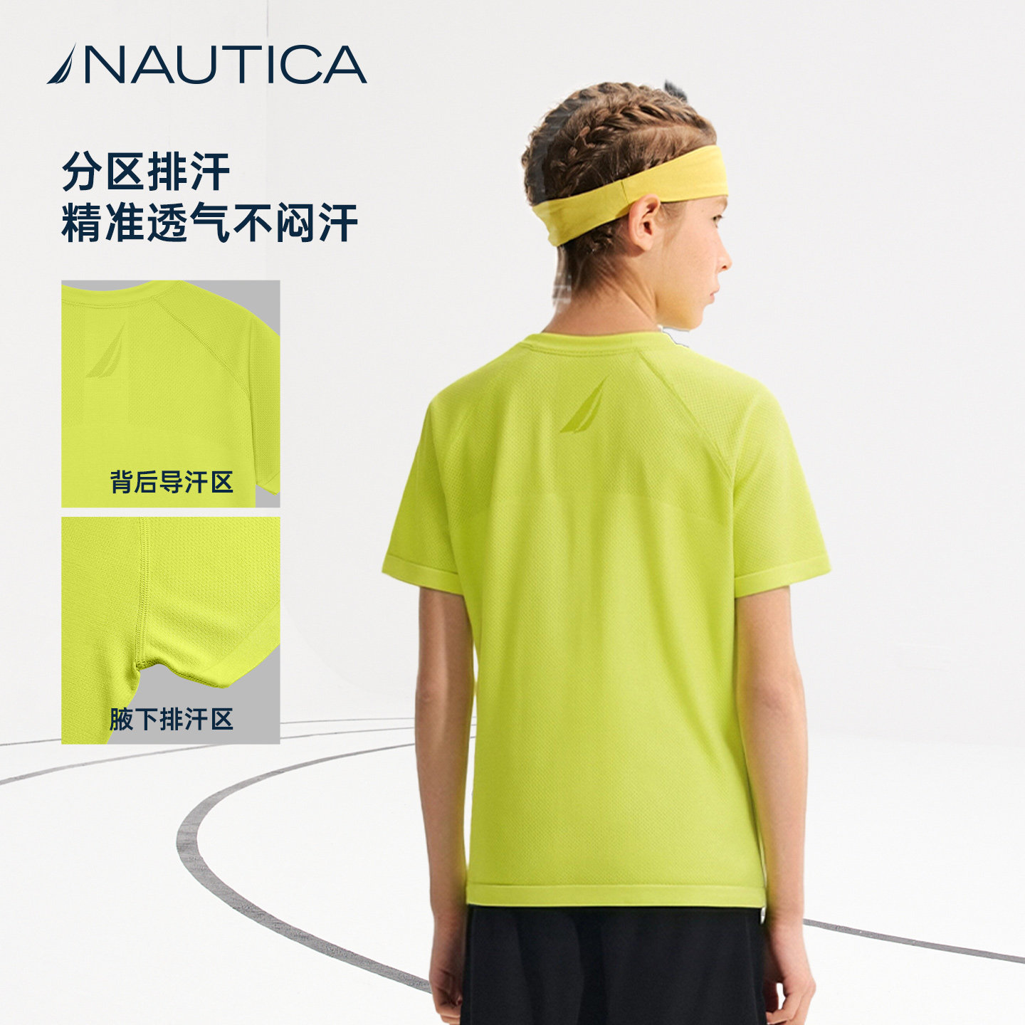 【分区排汗】NAUTICA童装儿童速干T恤一体织短袖男女童大童青少年