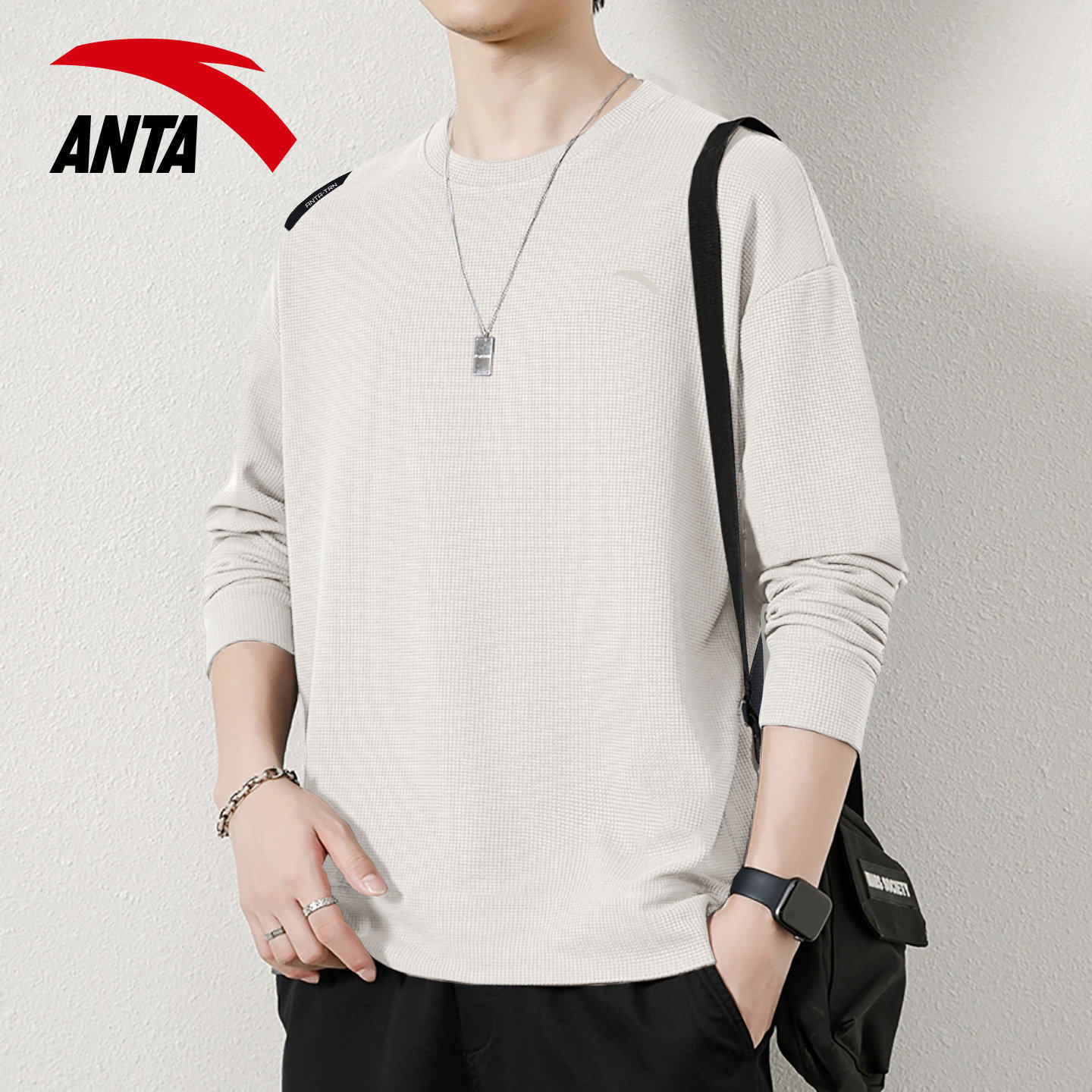 安踏长袖t恤男款2026春季新款休闲圆领运动上衣青少年内搭打底衫