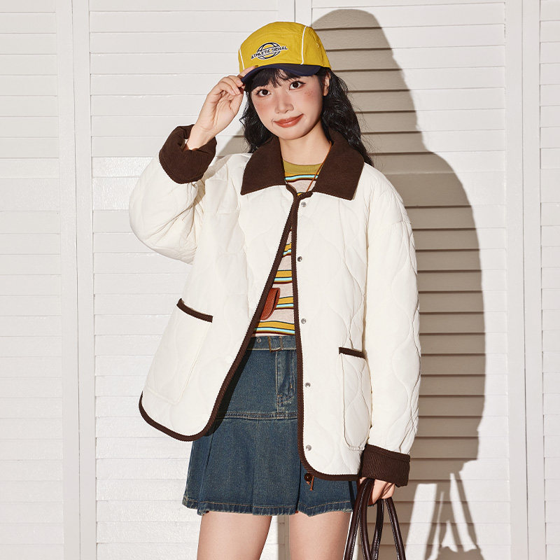 唐狮官方棉服女款冬季2026新款小个子加绒加厚翻领保暖夹棉外套VB