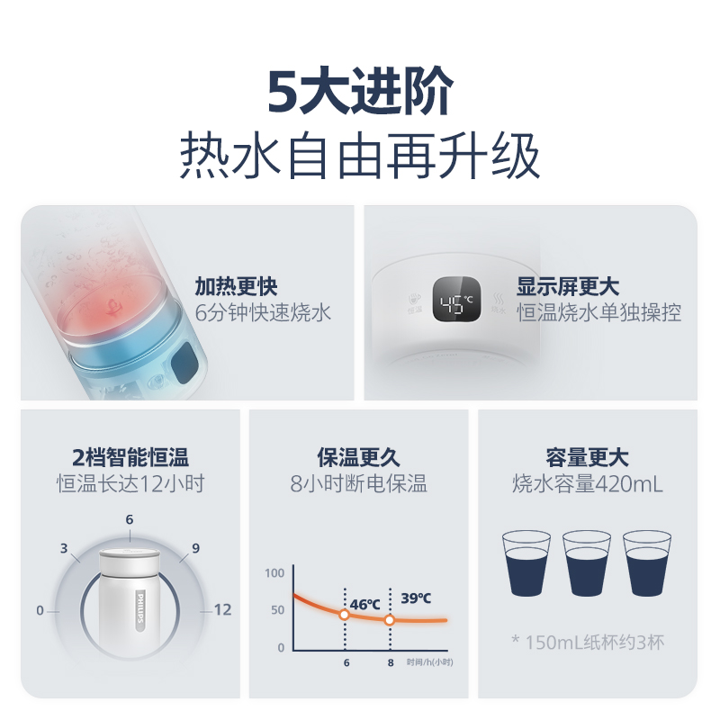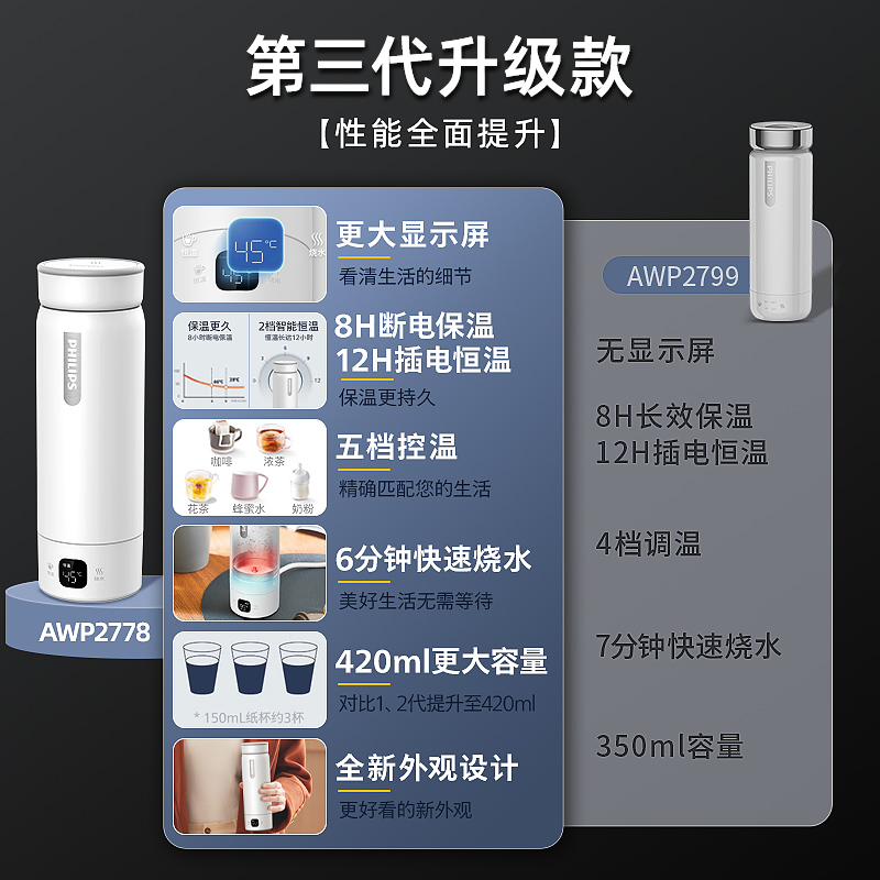 飞利浦恒温烧水杯小型便携式烧水壶办公室旅行加热电热水杯保温杯