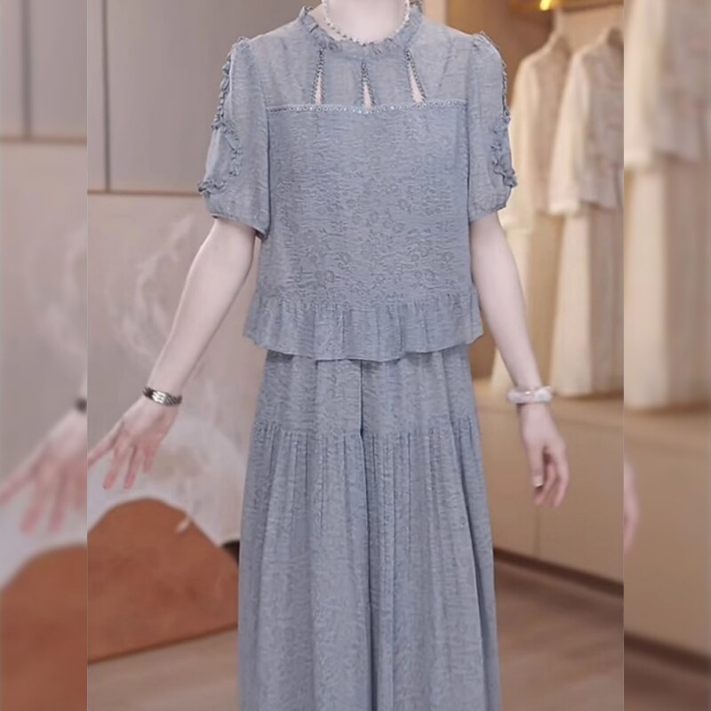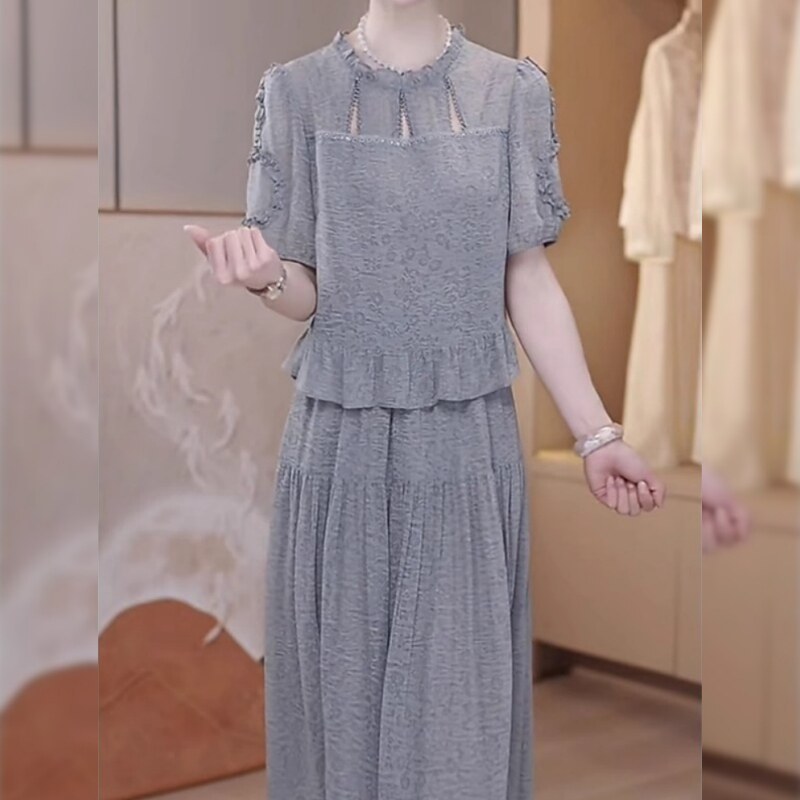 今年流行爆款短袖连衣裙女2026夏季新款高级感妈妈假两件时尚裙子