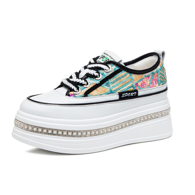 亮片小白鞋女2026新款厚底内增高8cm板鞋小个子配裙休闲水钻潮鞋