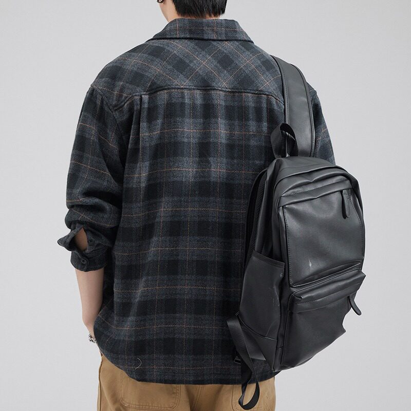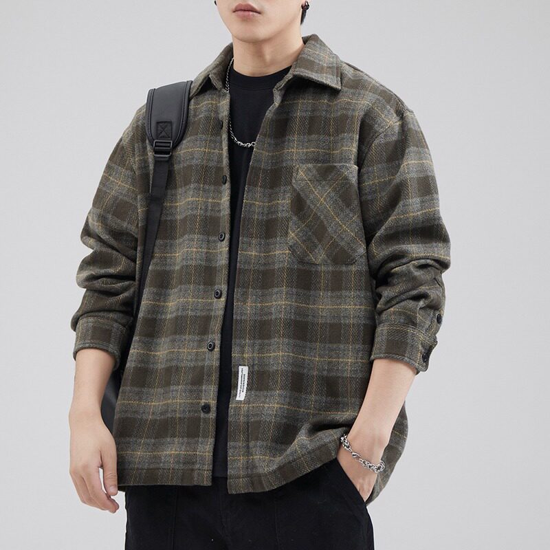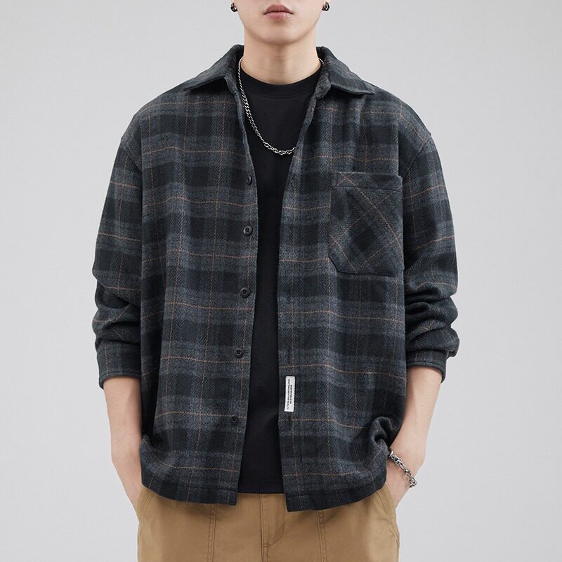 高级感痞帅休闲格子外套男款春秋季宽松加厚衬衫茄克百搭男士上衣
