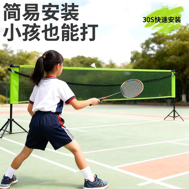 羽毛球网架便携式三角支架标准家用球移动网柱户外折叠室外毽球网