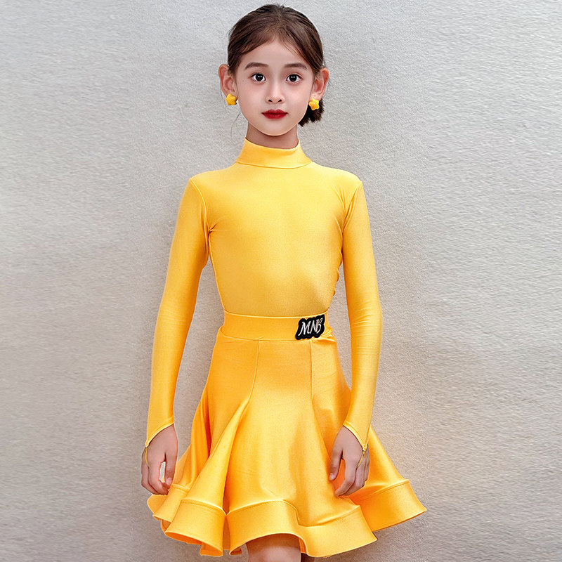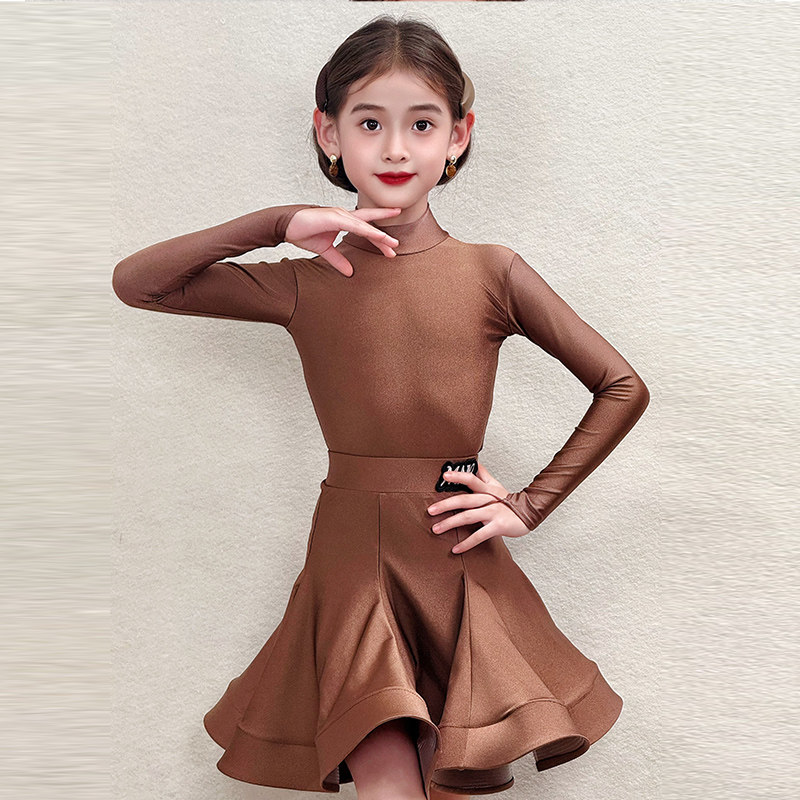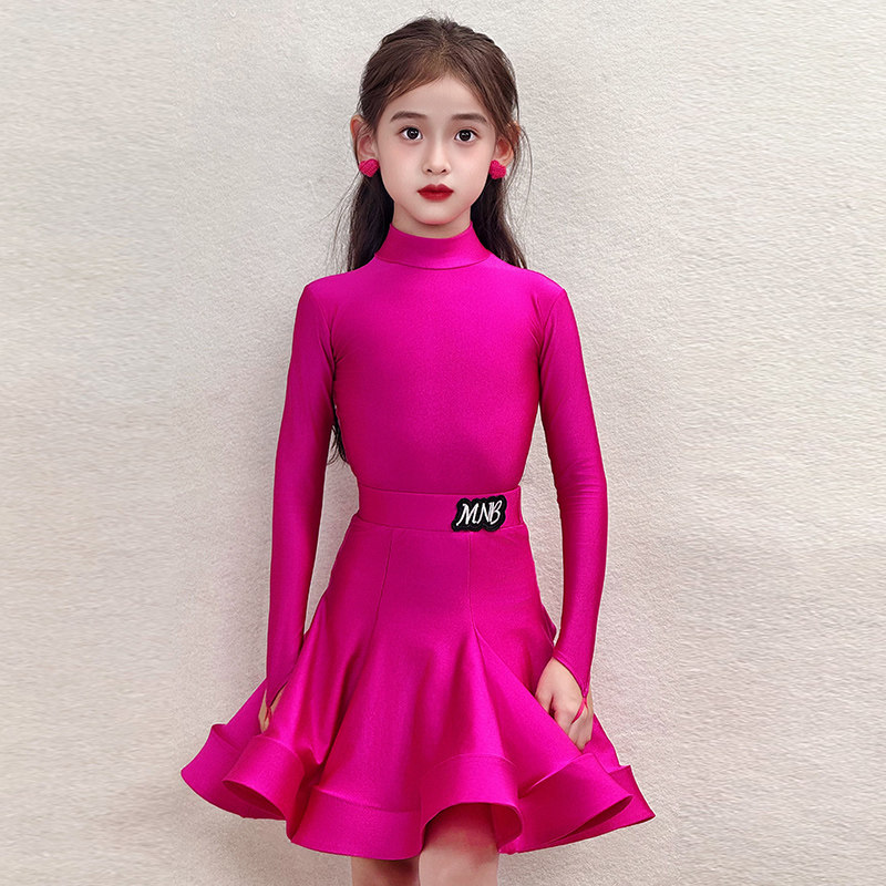 春季新款少儿拉丁舞服装女童标准比赛规定服长袖练功服考级表演出