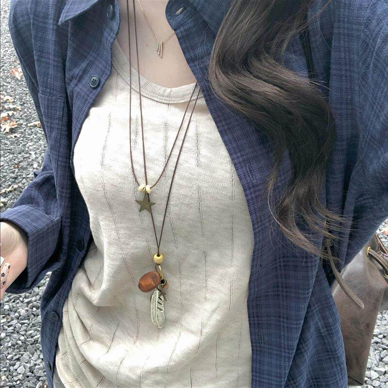格子衬衫上衣女款2026新款春装宽松慵懒薄款长袖衬衣外套夏季防