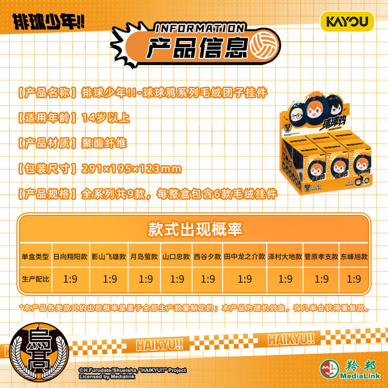 卡游 排球少年!!球球鸦系列毛绒团子挂件 官方正版动漫周边挂饰