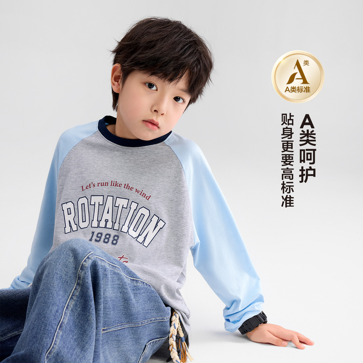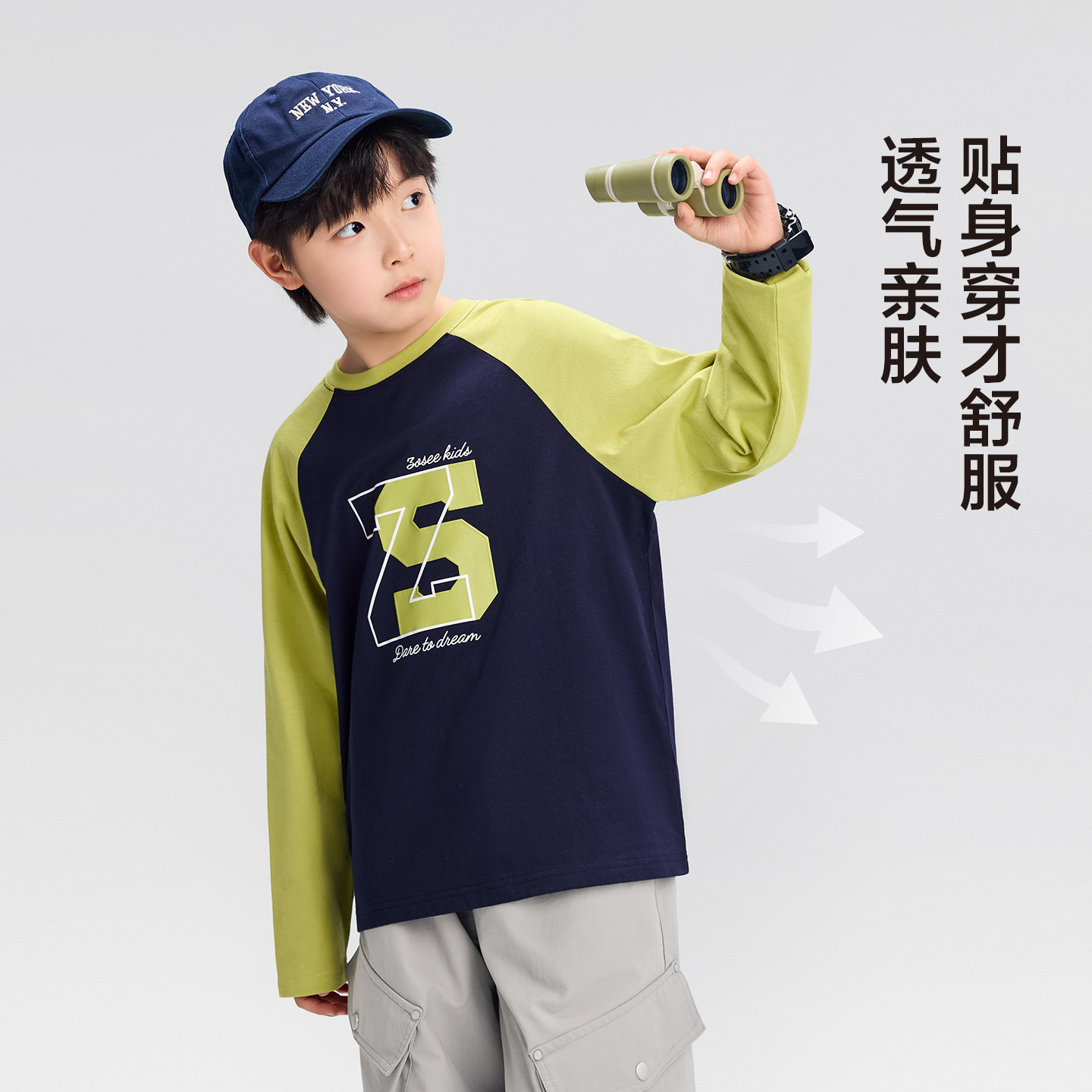 左西童装男童长袖t恤纯棉A类儿童插肩袖打底衫2026新款男孩大童潮