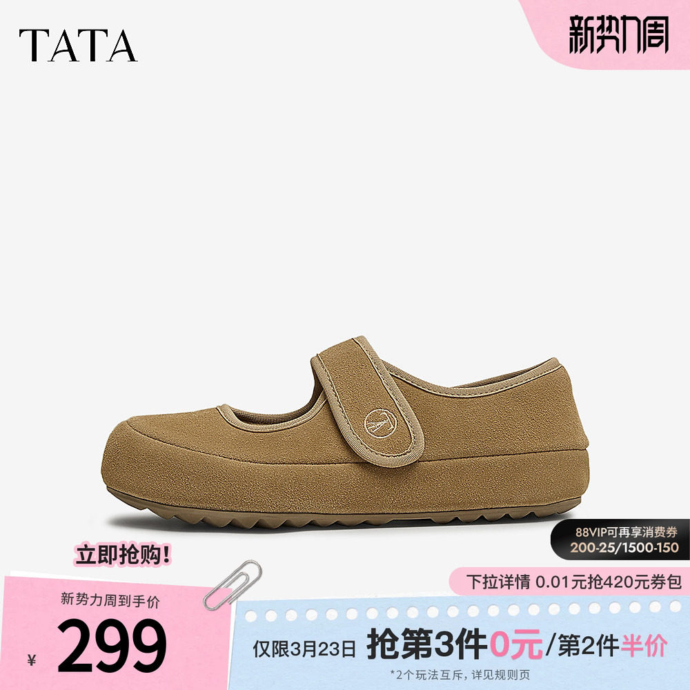 TATA他她复古棕色玛丽珍鞋女鞋浅口平底单鞋包头春季新款CS601AQ5