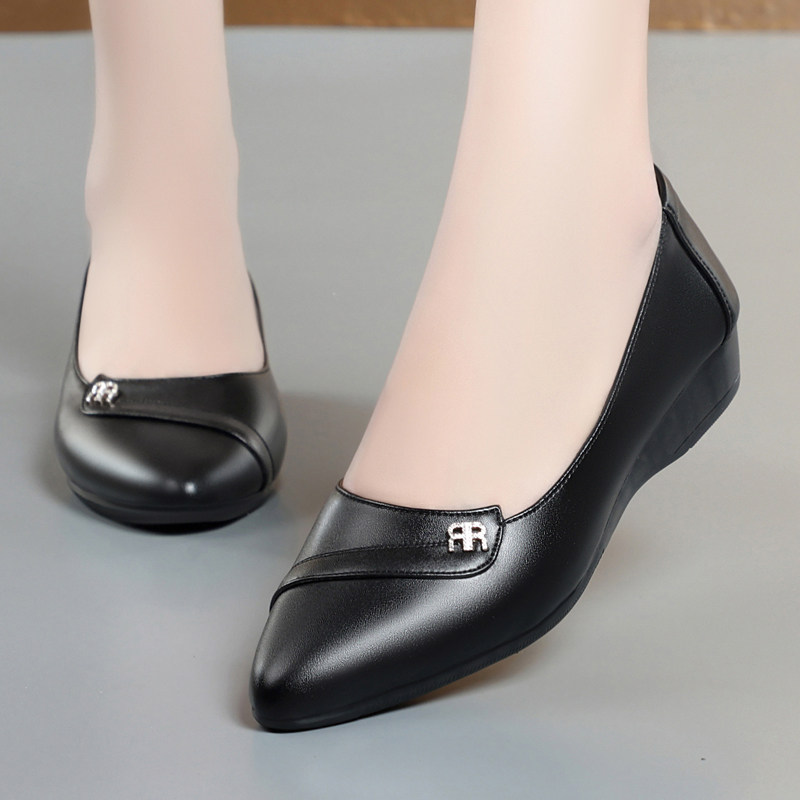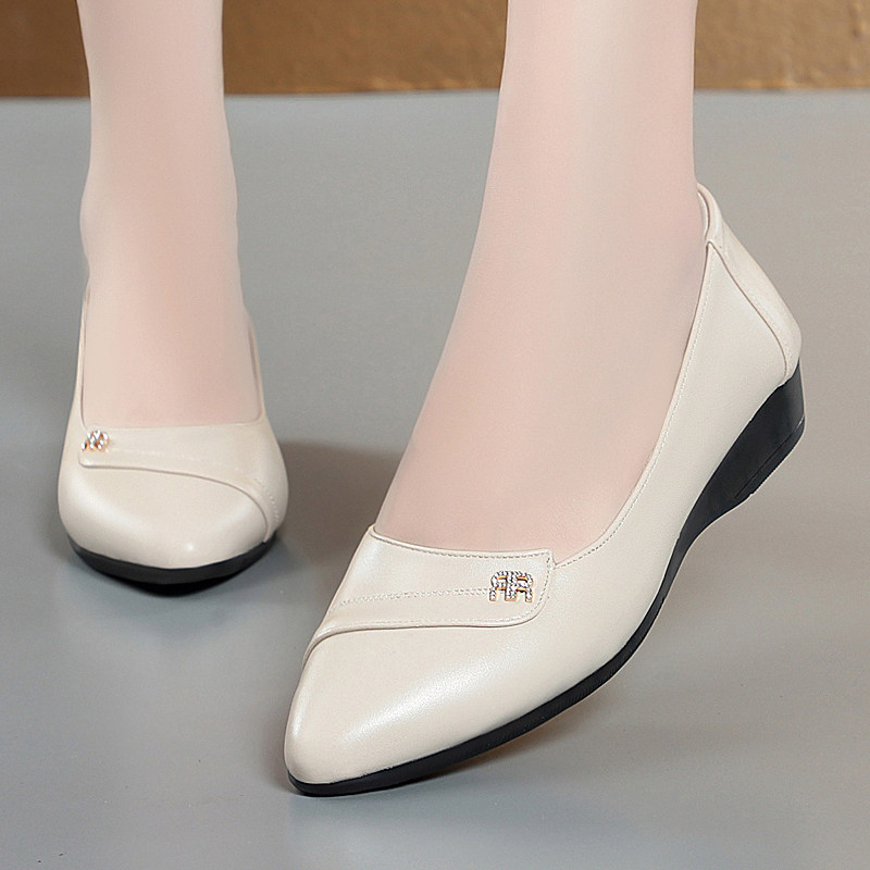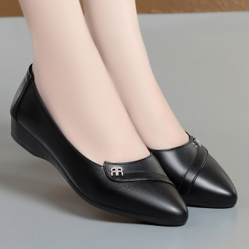 2026春季新款意尔康真皮单鞋女平底软底防滑舒适皮鞋中老年妈妈鞋