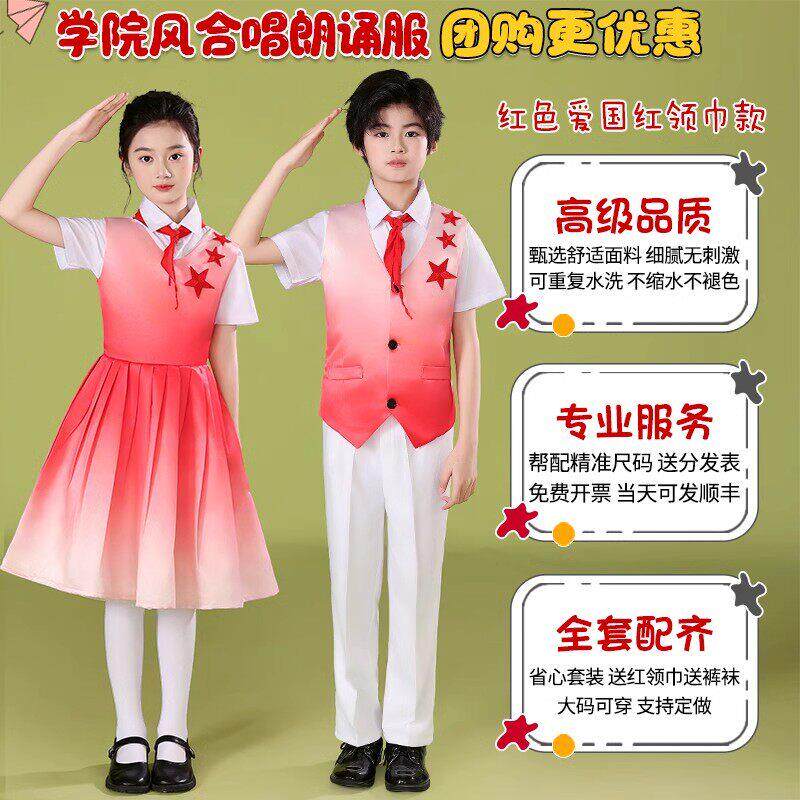 六一儿童合唱朗诵演出服爱国主题女童小学生红色诗歌演讲比赛服装