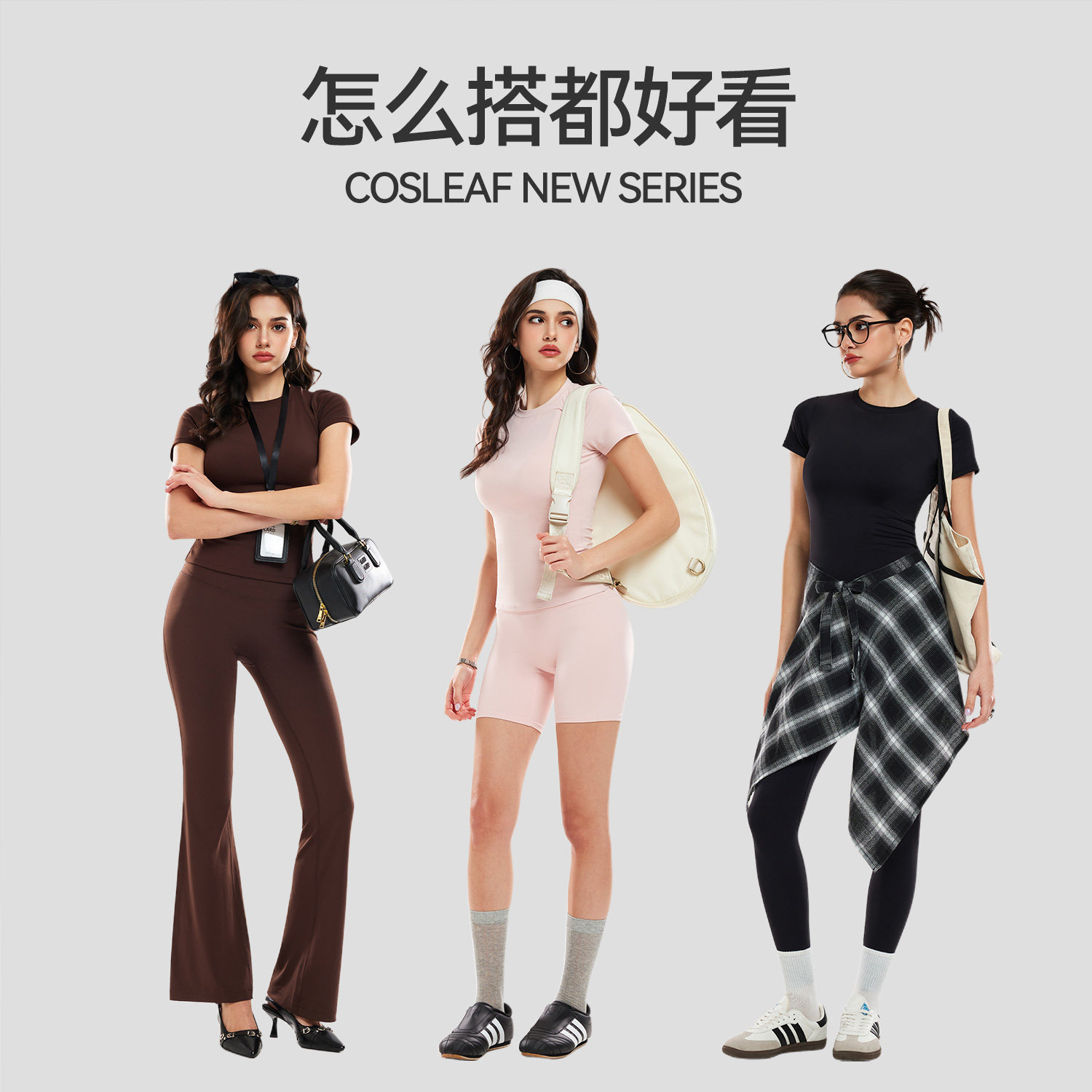 正肩短袖T恤女款夏季修身显瘦运动速干上衣百搭时尚普拉提健身服