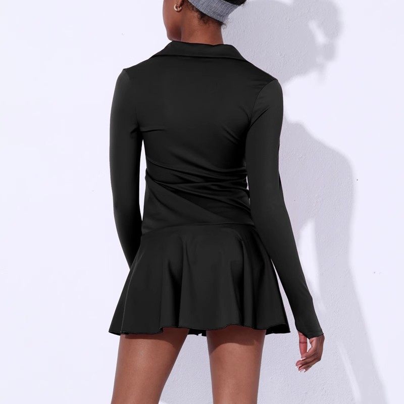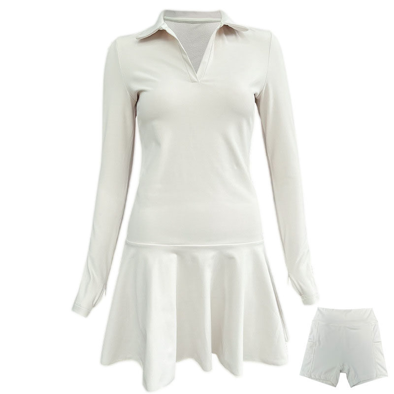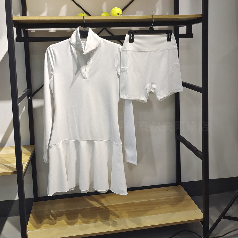 加细绒换季清温网纯白色网球连衣裙长袖保暖防走光女高尔夫运动裙