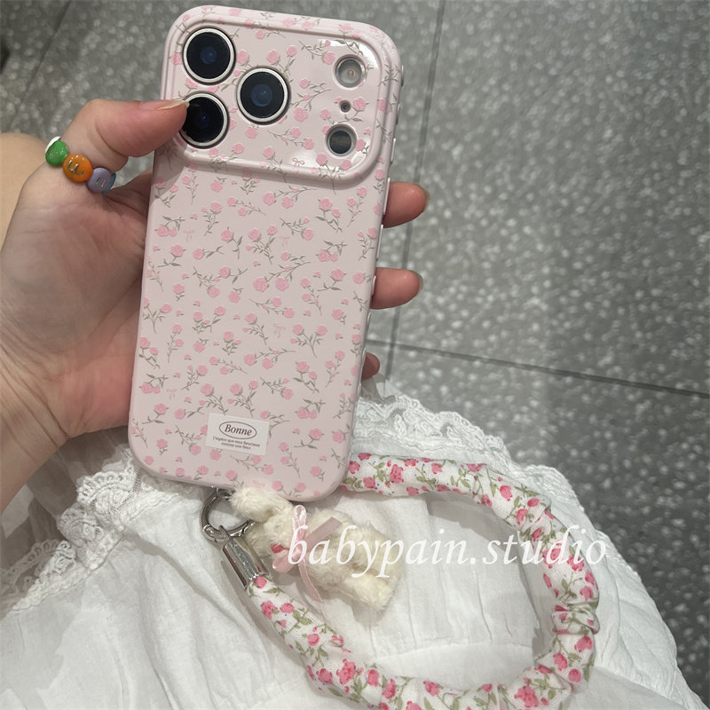 babypain 冬日ins浪漫少女心碎花适用iPhone17promax手机壳苹果16pro腕带挂绳14pro毛绒兔兔13pro软壳15pro套