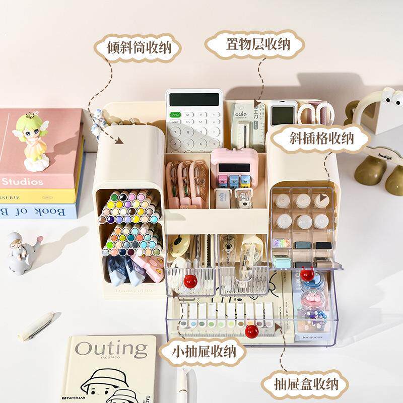 抽屉式桌面收纳盒学生办公室书桌文具杂物置物架大容量整理笔筒箱