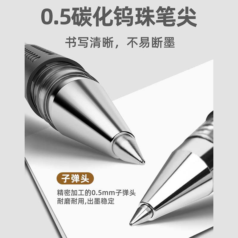 得力中性笔学生用碳素笔考试文具黑色0.5mm黑笔红笔圆珠笔签字笔原子墨水水性笔芯子弹头办公用品批发