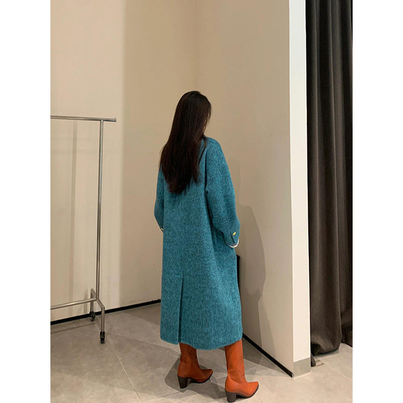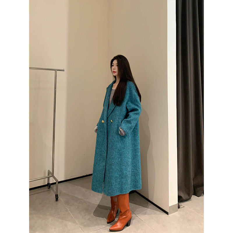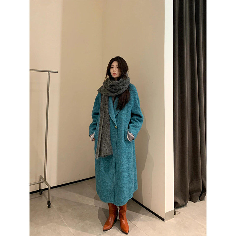 明星日记|高级感:孔雀蓝|2025秋冬新款气质羊毛大衣双面呢外套女