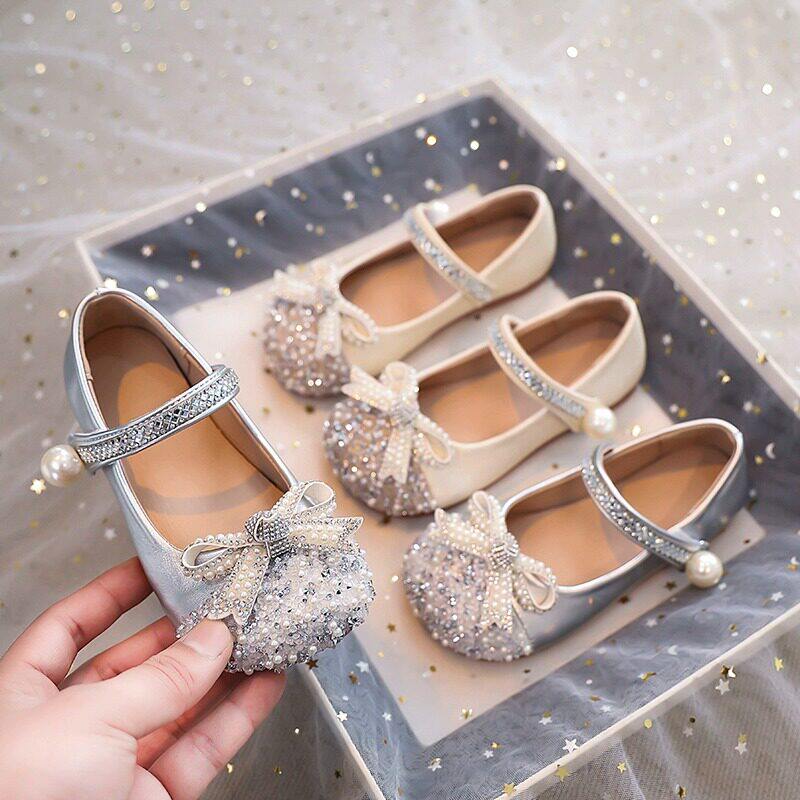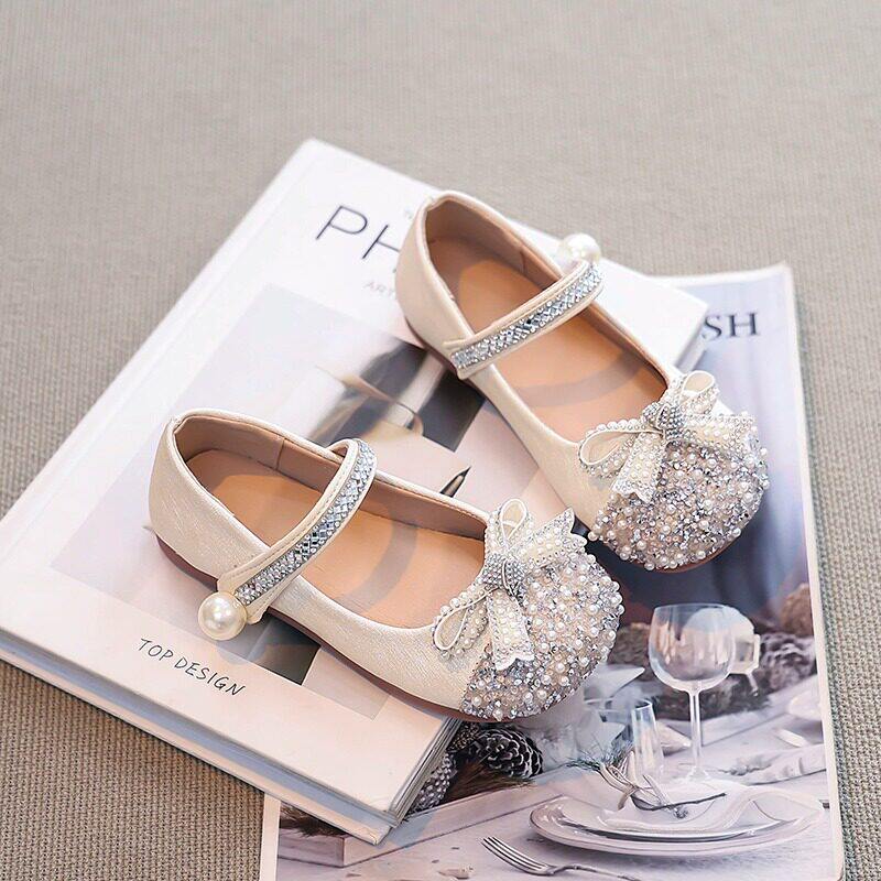 真皮女童水晶公主鞋新款儿童小皮鞋艾莎亮晶晶配礼服春季演出单鞋
