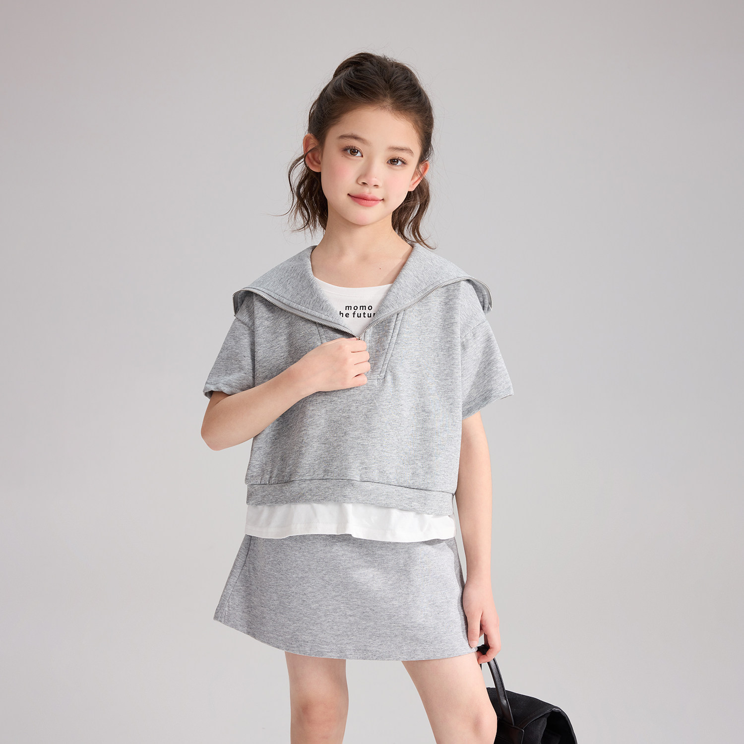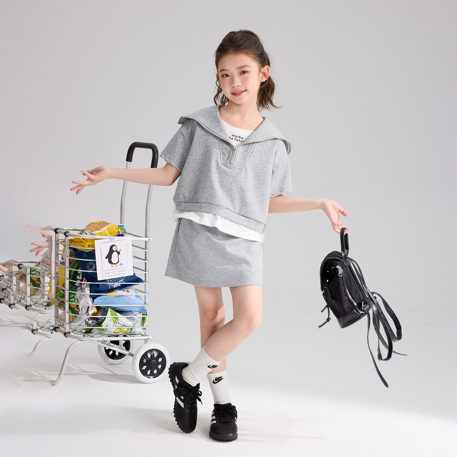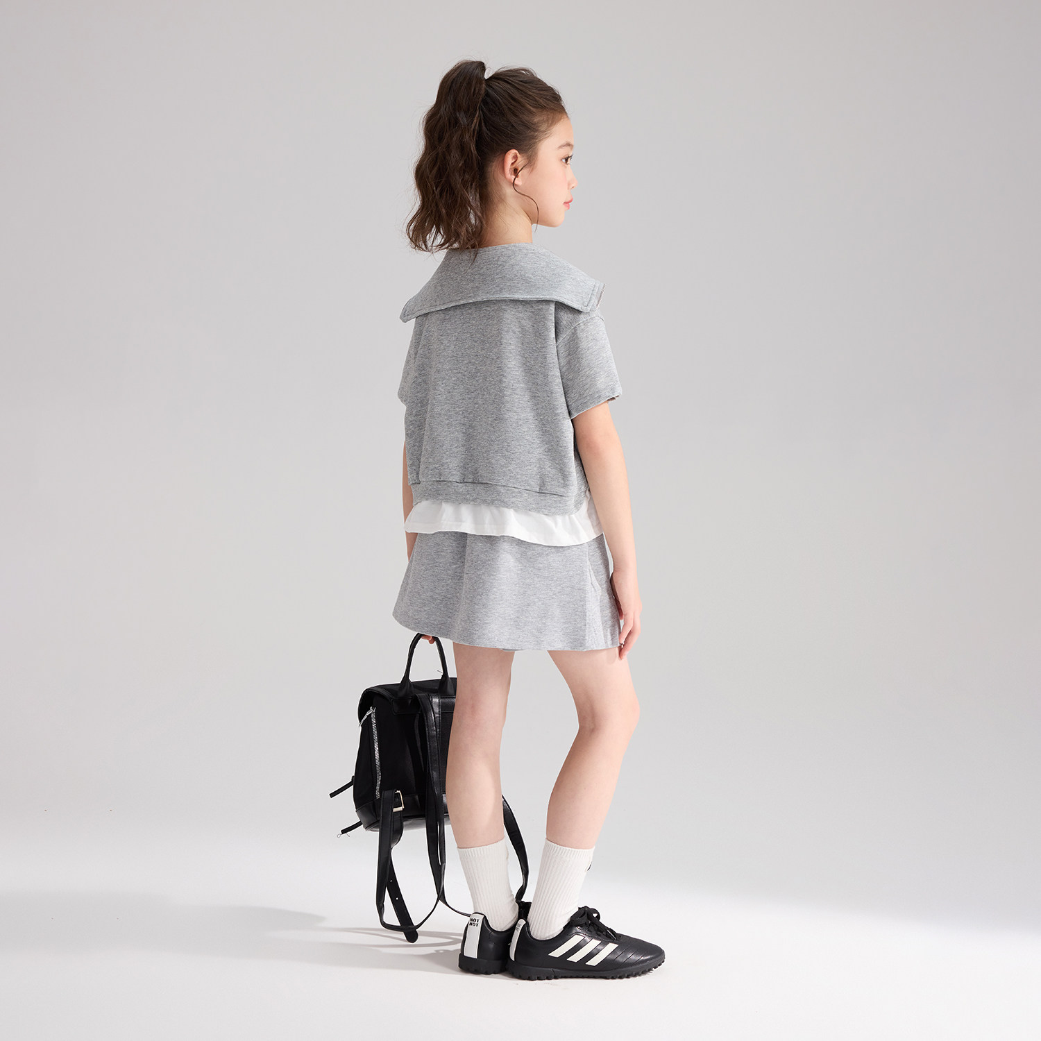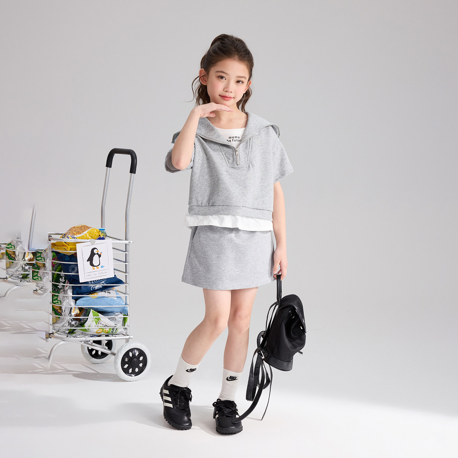 布丁哈鲁童装夏装女童翻领短袖2026夏季新款儿童休闲运动裙子套装