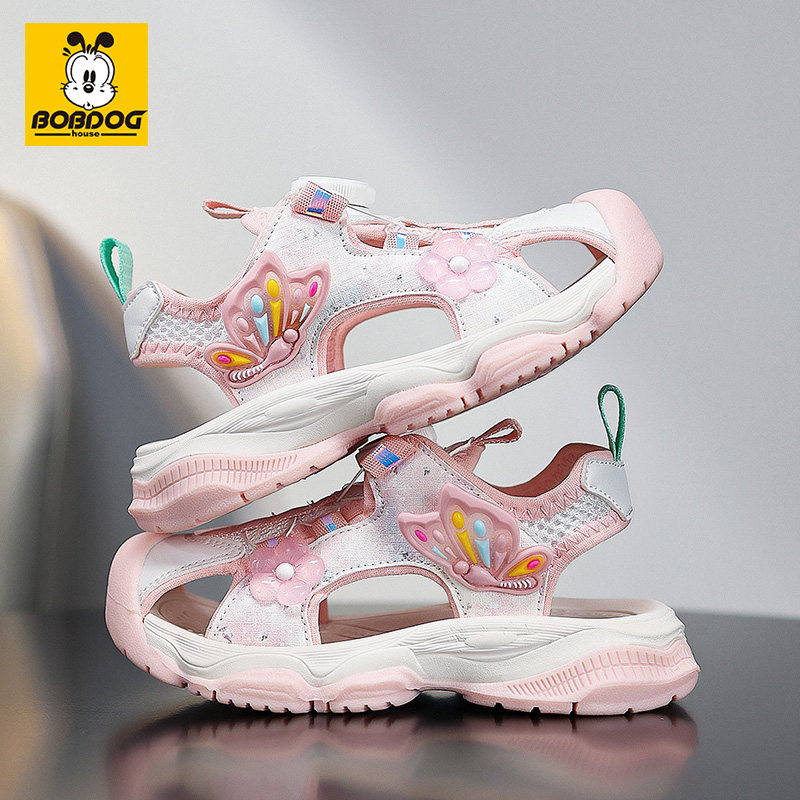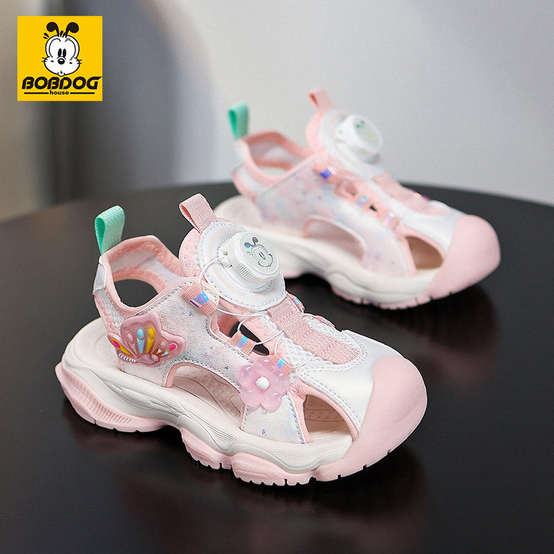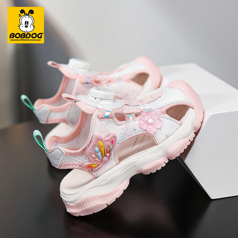 巴布豆童鞋2026夏季新款包头凉鞋儿童防滑旋转软底纽扣女童沙滩鞋