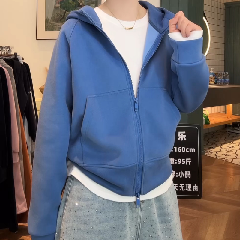 2026春装新款双拉链连帽开衫净版薄款小个子卫衣女款宽松百搭外套
