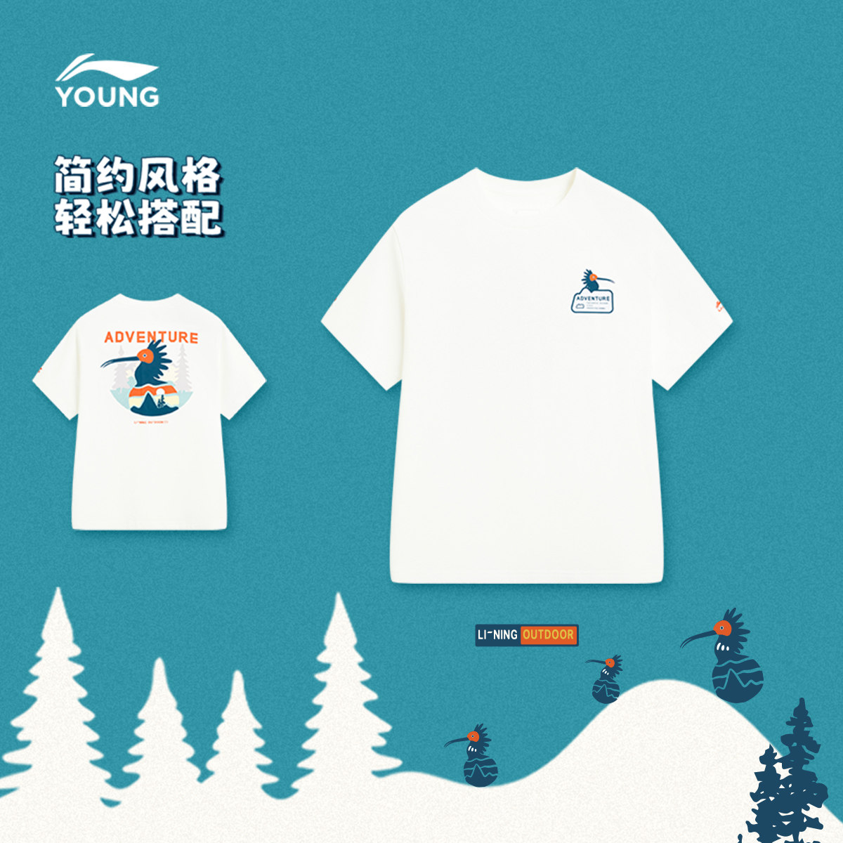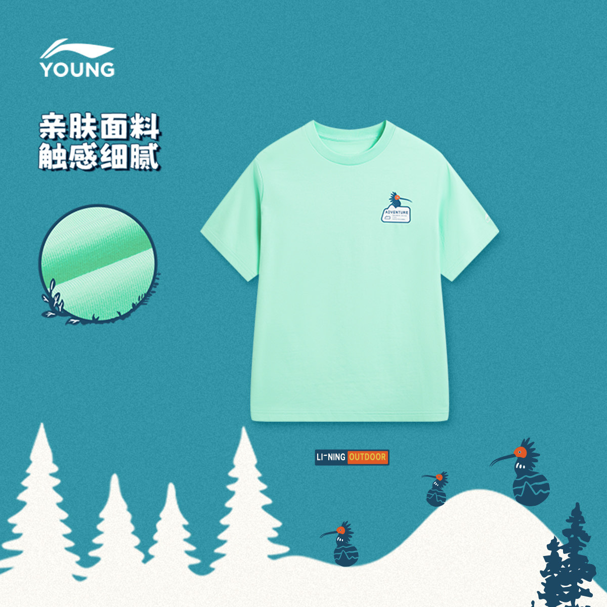李宁童装短袖T恤男大童户外系列青少年圆领上衣夏季针织童装