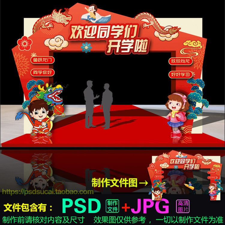 2024龙年开学迎新拍照框美陈拱门头龙门架指示牌psd模板素材文件