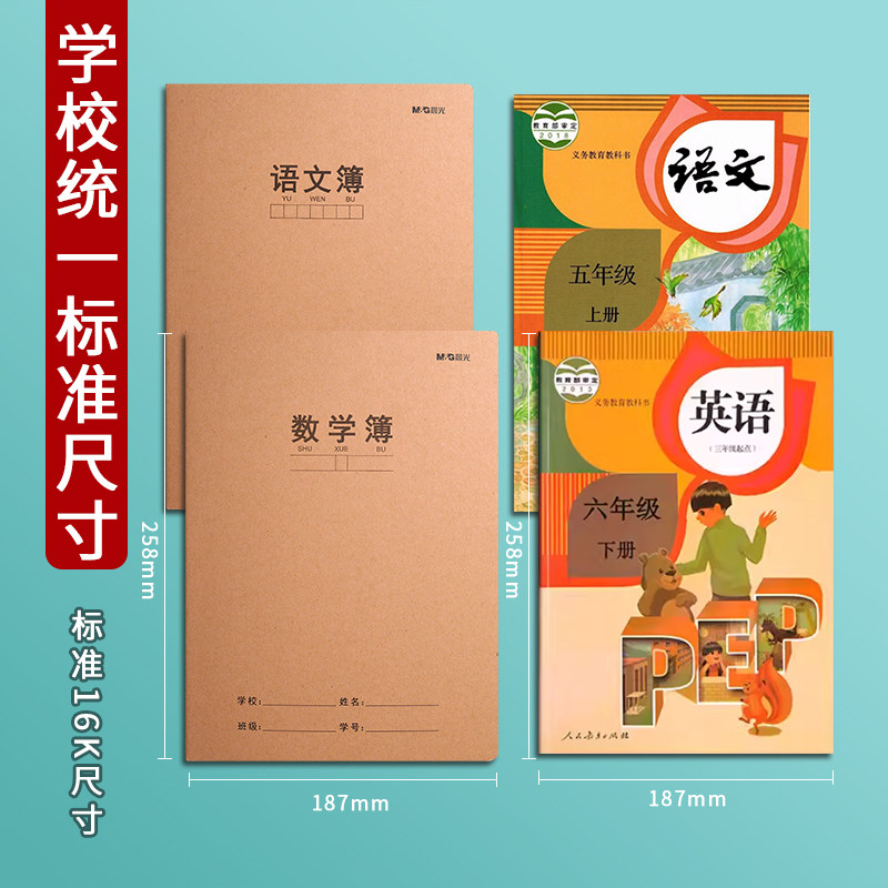 晨光数学本文具A5一年级二年级四五六三年级16k米白内页牛皮纸加厚小学生专用作业本子初中生高中生数学簿