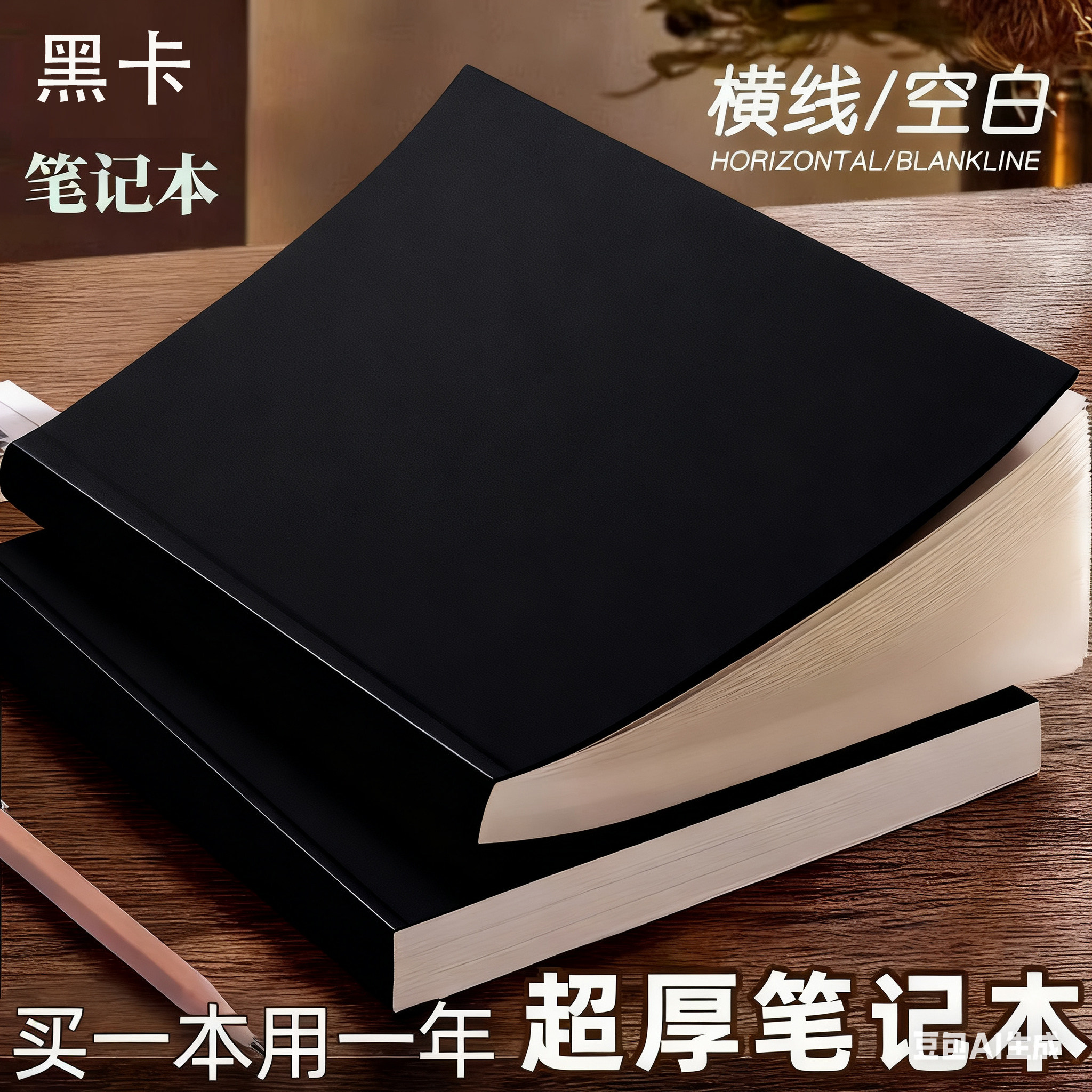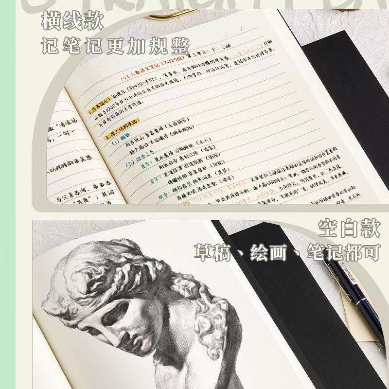 黑卡笔记本A4空白本牛皮笔记本子无格无线内页白纸本大本子手绘本