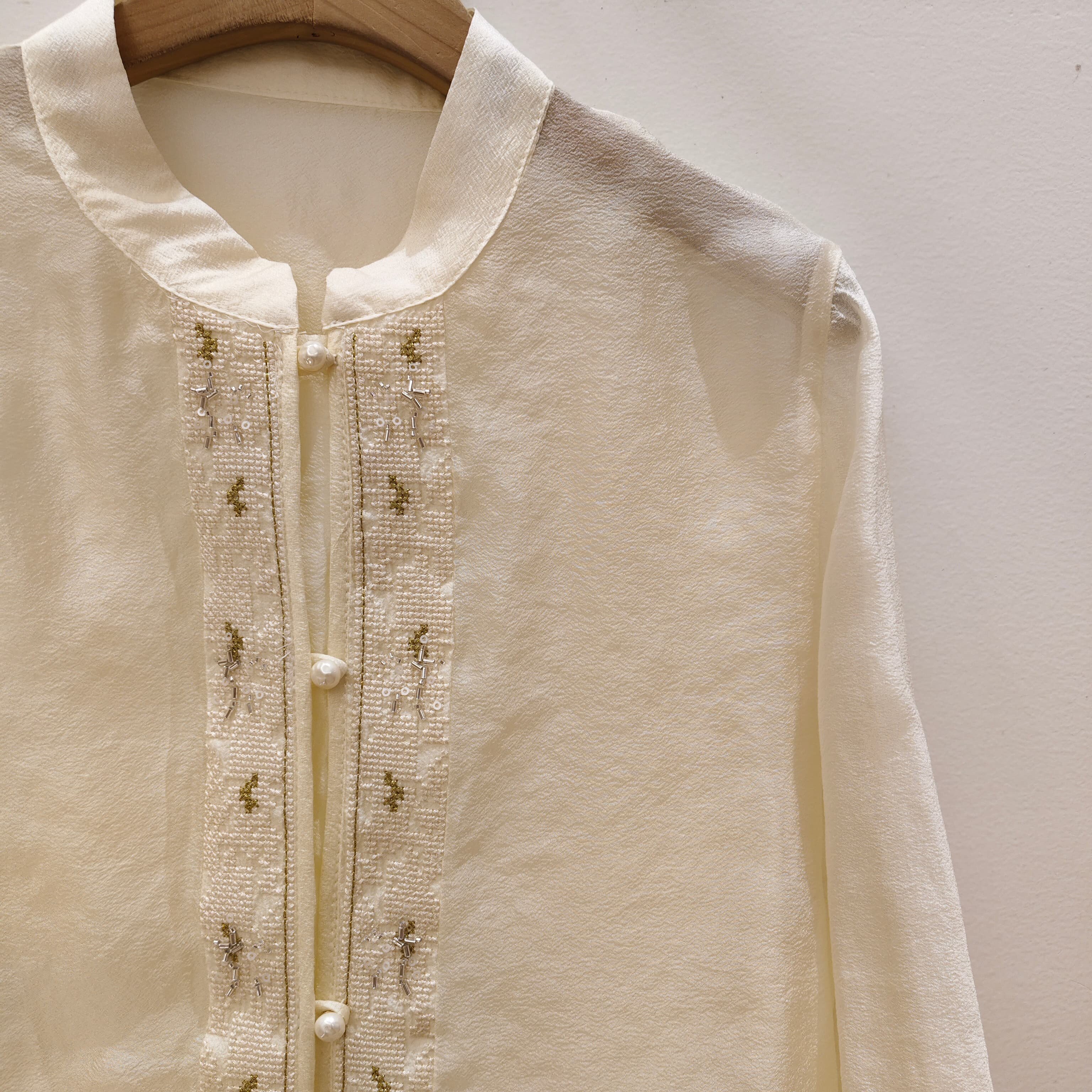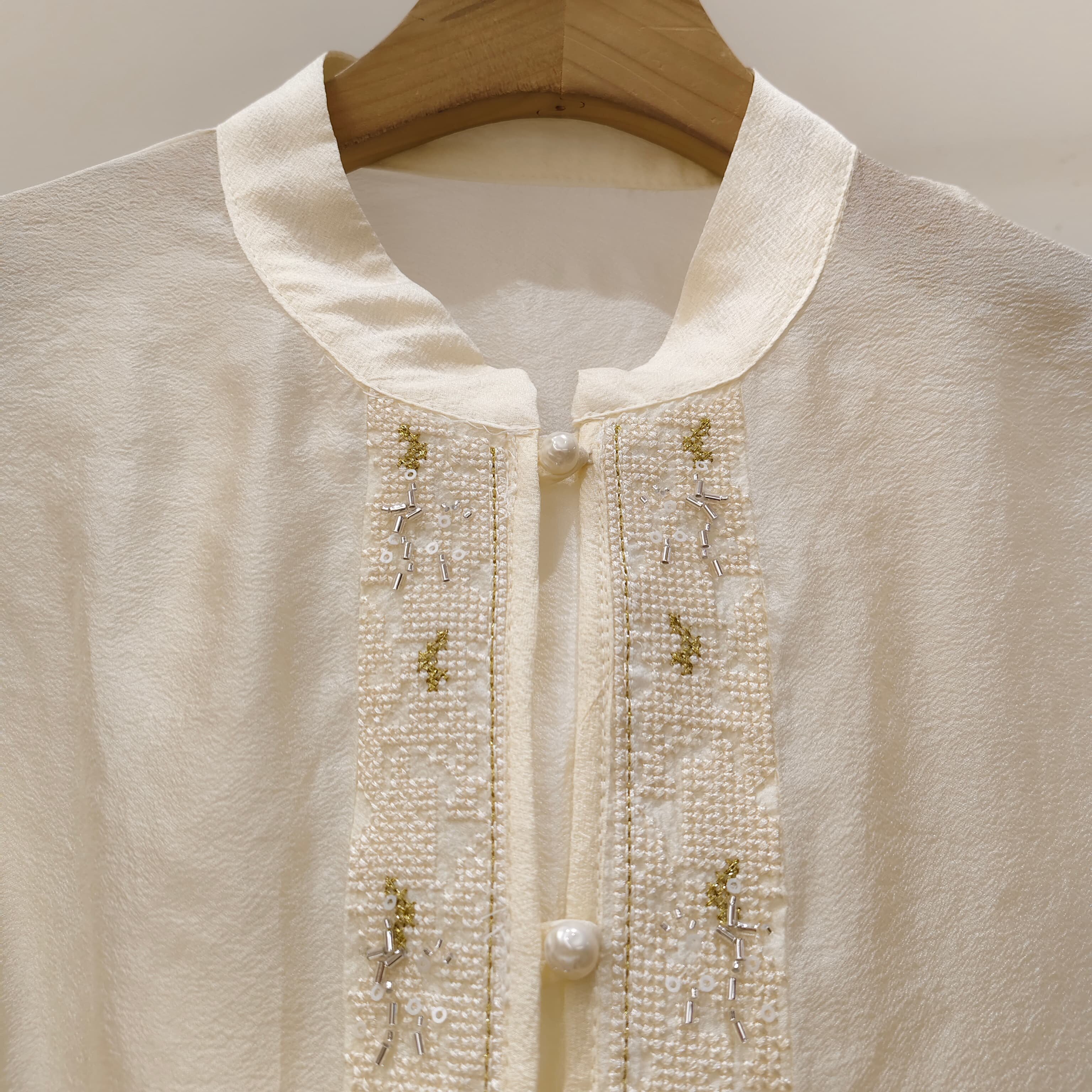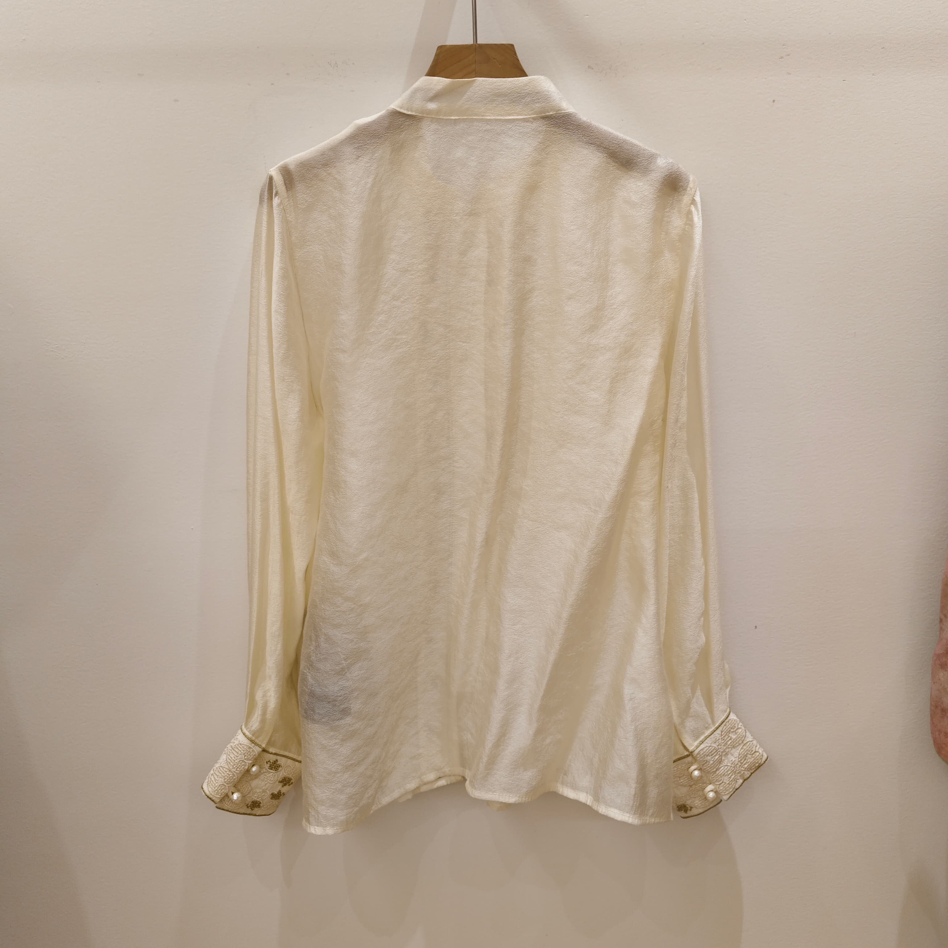 新中式钉珠刺绣立领天丝长袖衬衫女早春国风百搭薄款上衣2026新款